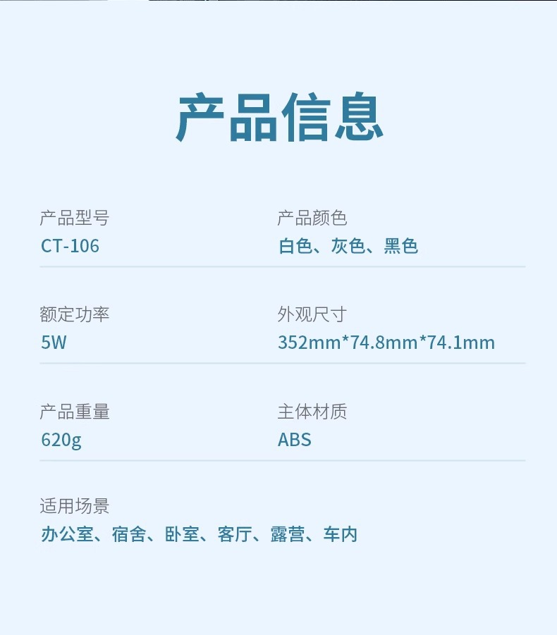 • 아이보리 화이트 [업그레이드 충전 모델] 36H 배터리 수명 16℃에어컨 냉동 광각 순환 쉐이킹 헤드 수직 및 수평 교수형 3가지 용도