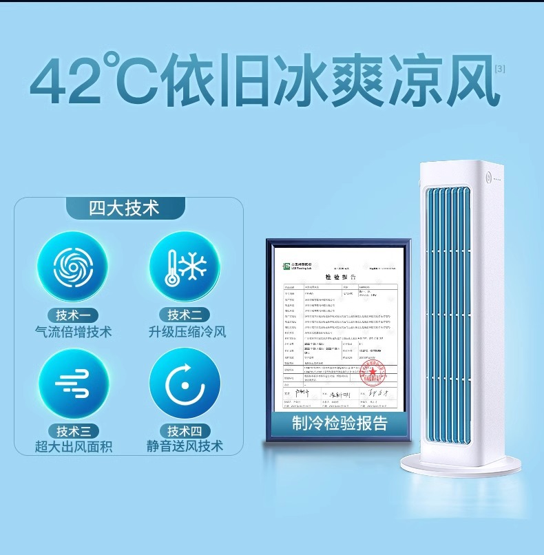 • 딥씨블루 [리모컨 모델] 36H 배터리 수명 16℃에어컨 냉동 광각 순환 쉐이킹 헤드 수직 및 수평 교수형 3가지 용도
