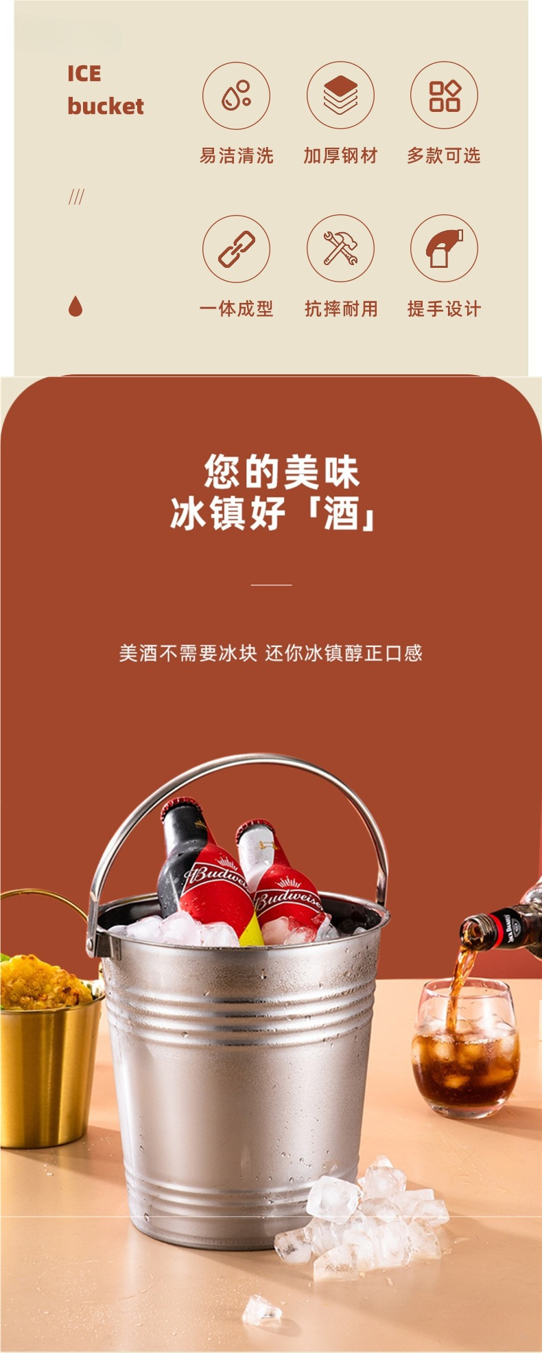 인터넷 연예인 아이스 버킷 가정용 스테인레스 스틸 아이스 버킷 바 샴페인 맥주 레드 호텔 용품 스낵 버킷 상업용 머스캣