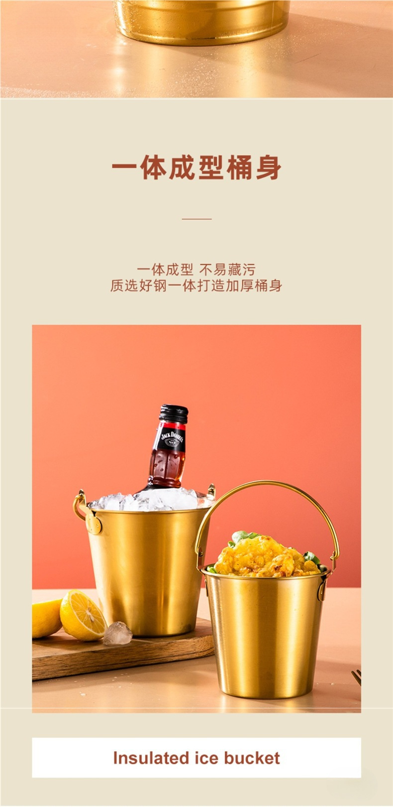 • 두꺼운 304 스틸 스낵 버킷 리치 골드 11cm (0.7L)