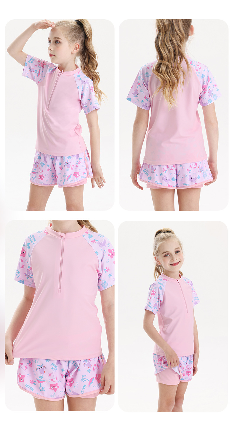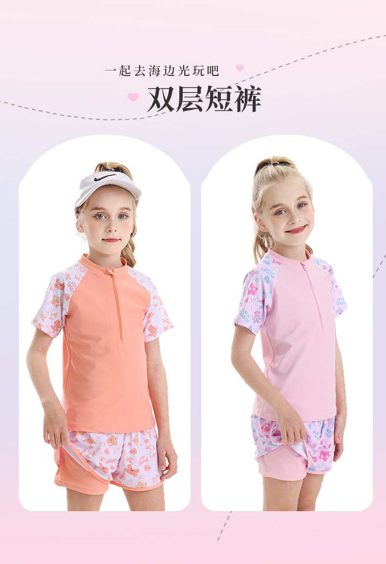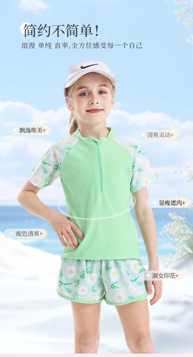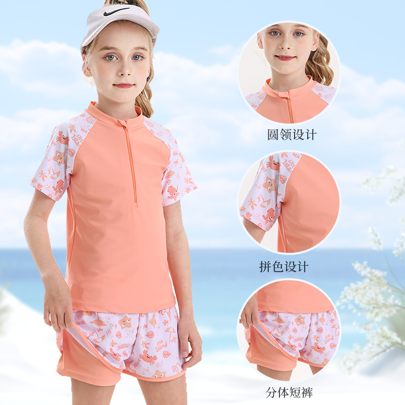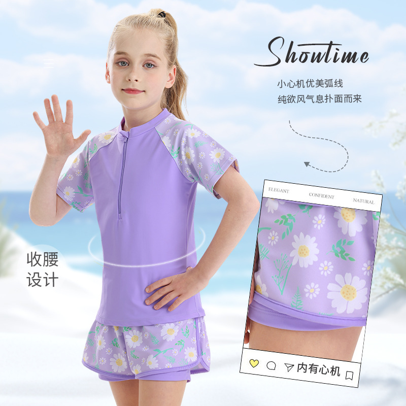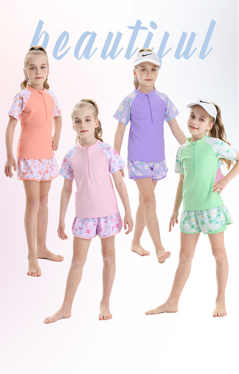 Yue 2025 어린이 수영복 소녀 귀여운 컬러 스플 라이스 수영복 중년 및 노년층 학생 수영 훈련 세트