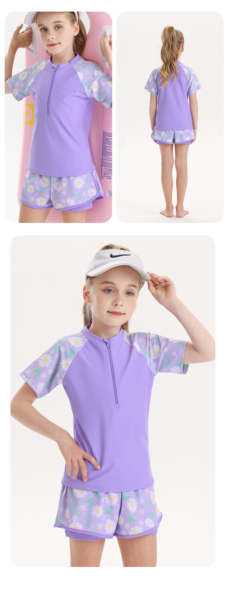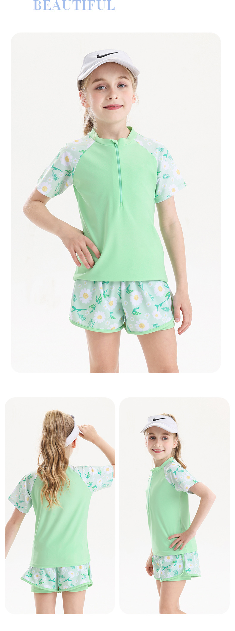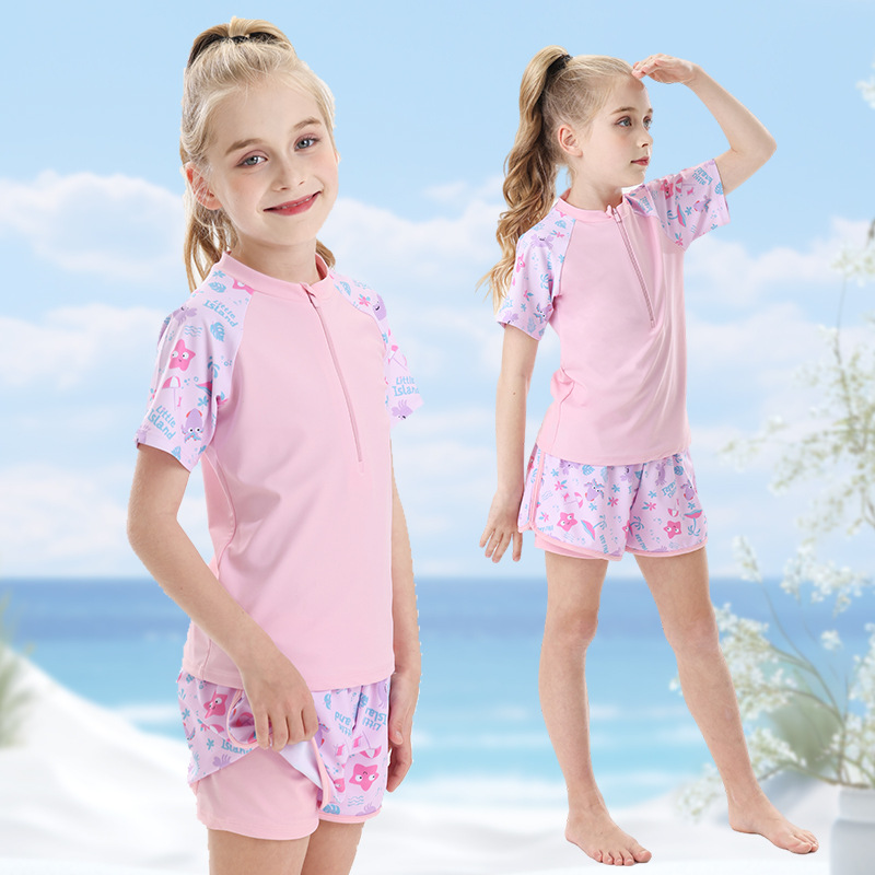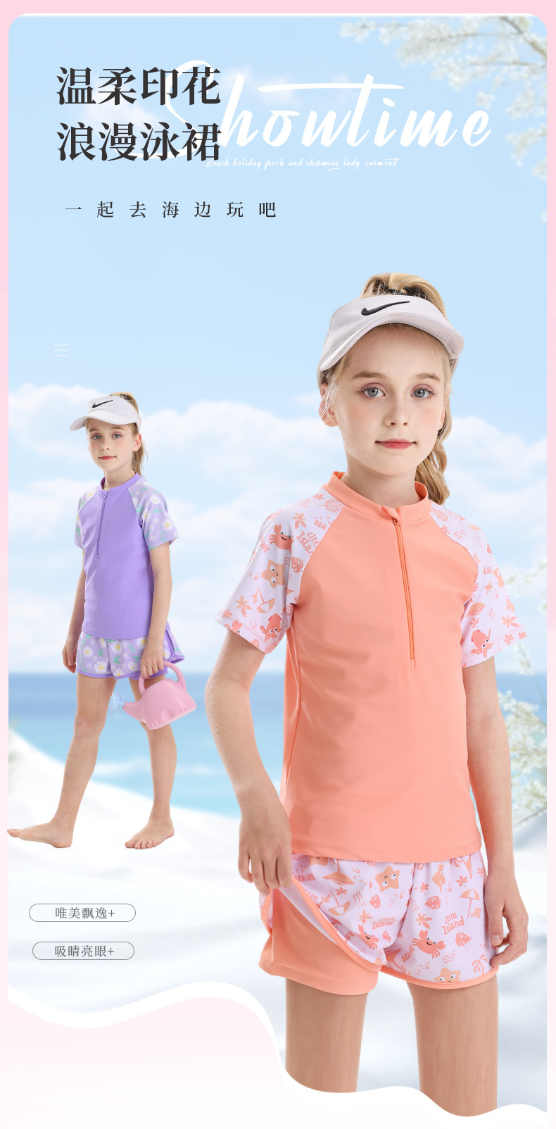 Yue 2025 어린이 수영복 소녀 귀여운 컬러 스플 라이스 수영복 중년 및 노년층 학생 수영 훈련 세트