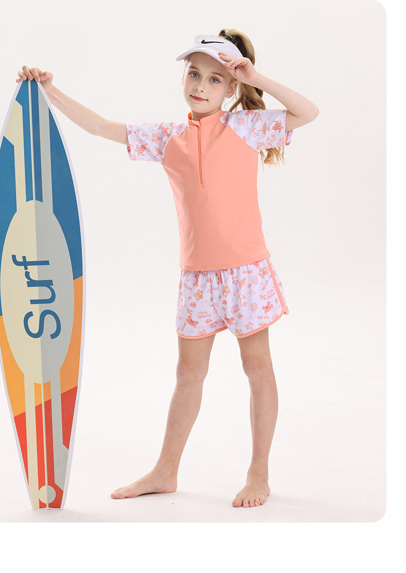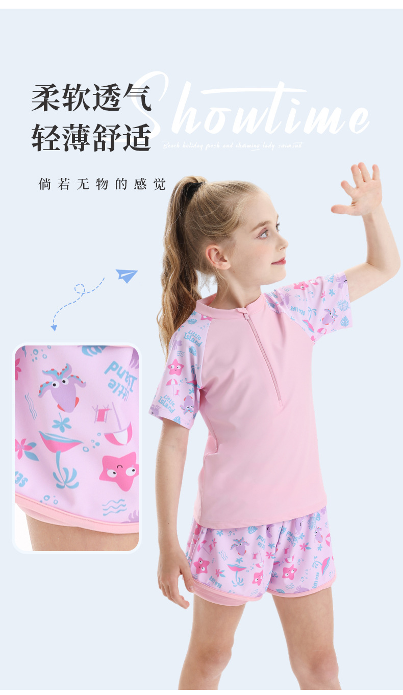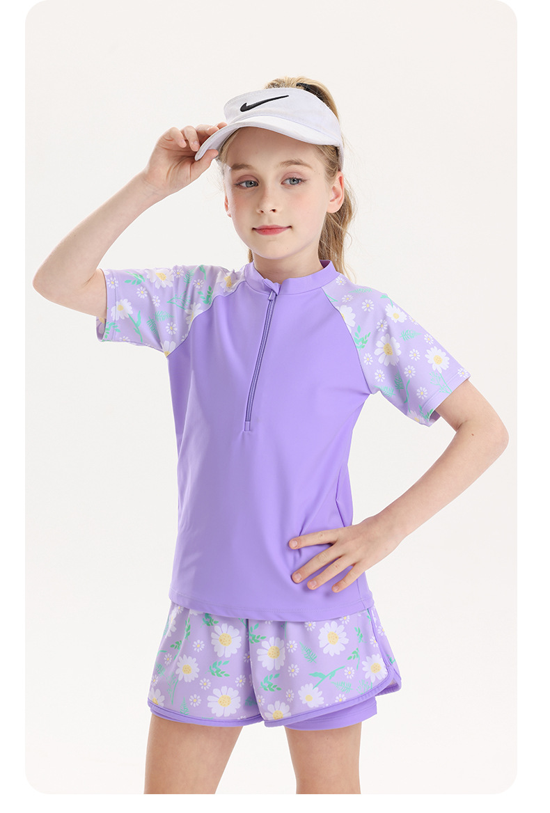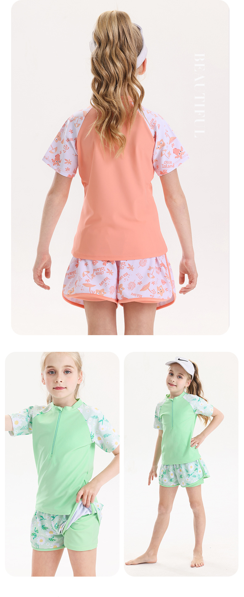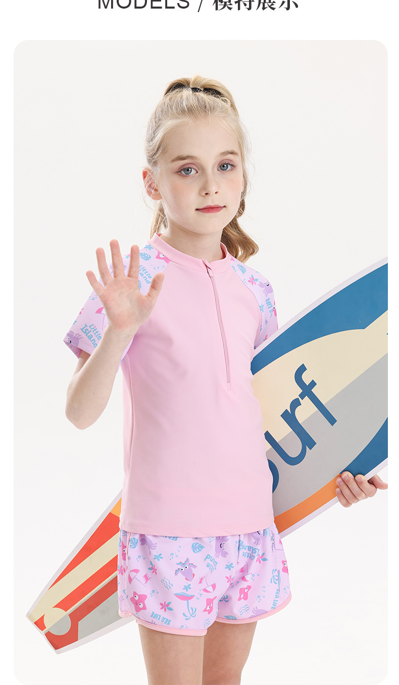 Yue 2025 어린이 수영복 소녀 귀여운 컬러 스플 라이스 수영복 중년 및 노년층 학생 수영 훈련 세트