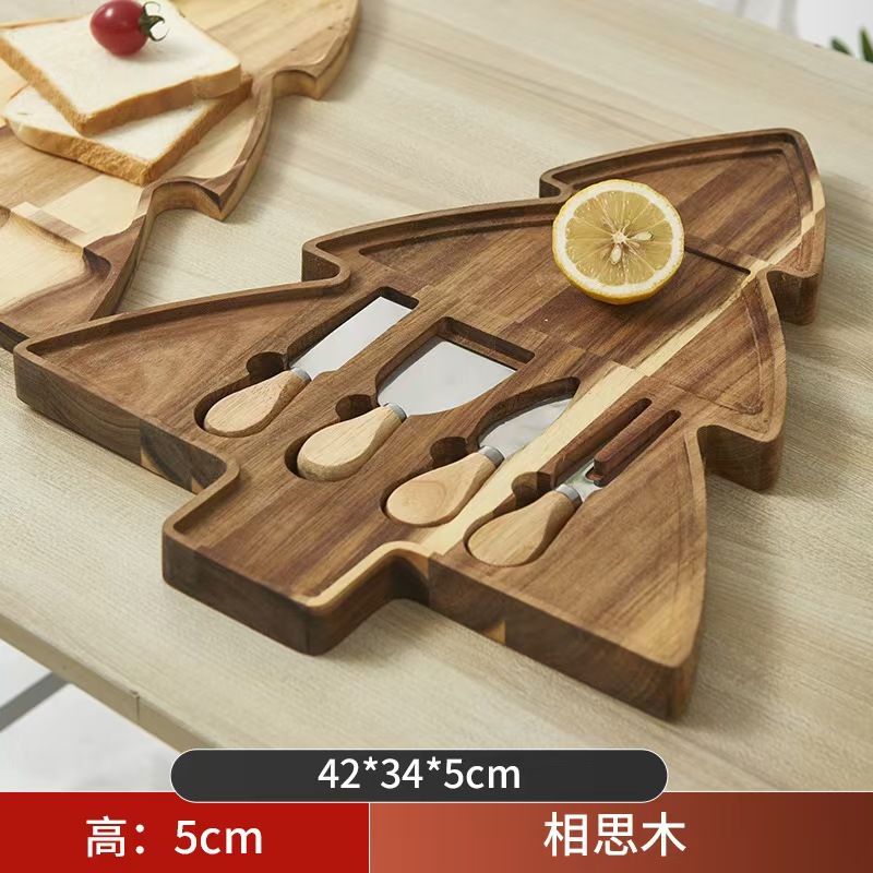 크리스마스 단단한 나무 장식 트레이 홈 디너 나무 치즈 도마 크리스마스 트리 디저트 과일 나무 트레이