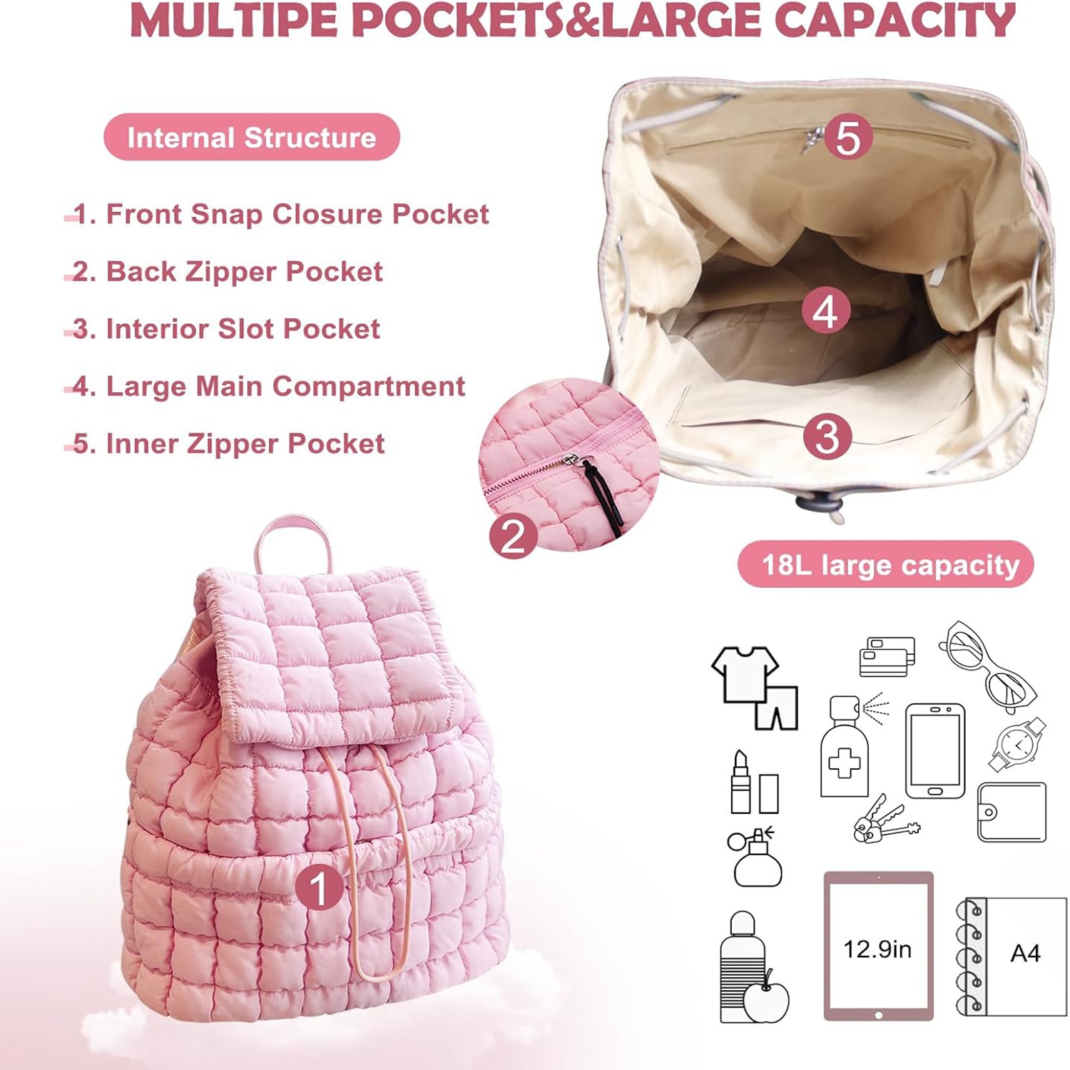 다운 주름 배낭 유럽과 미국의 국경 간 새로운 대용량 여성 가방 간단한 유행 통근 격자 무늬 클라우드 가방