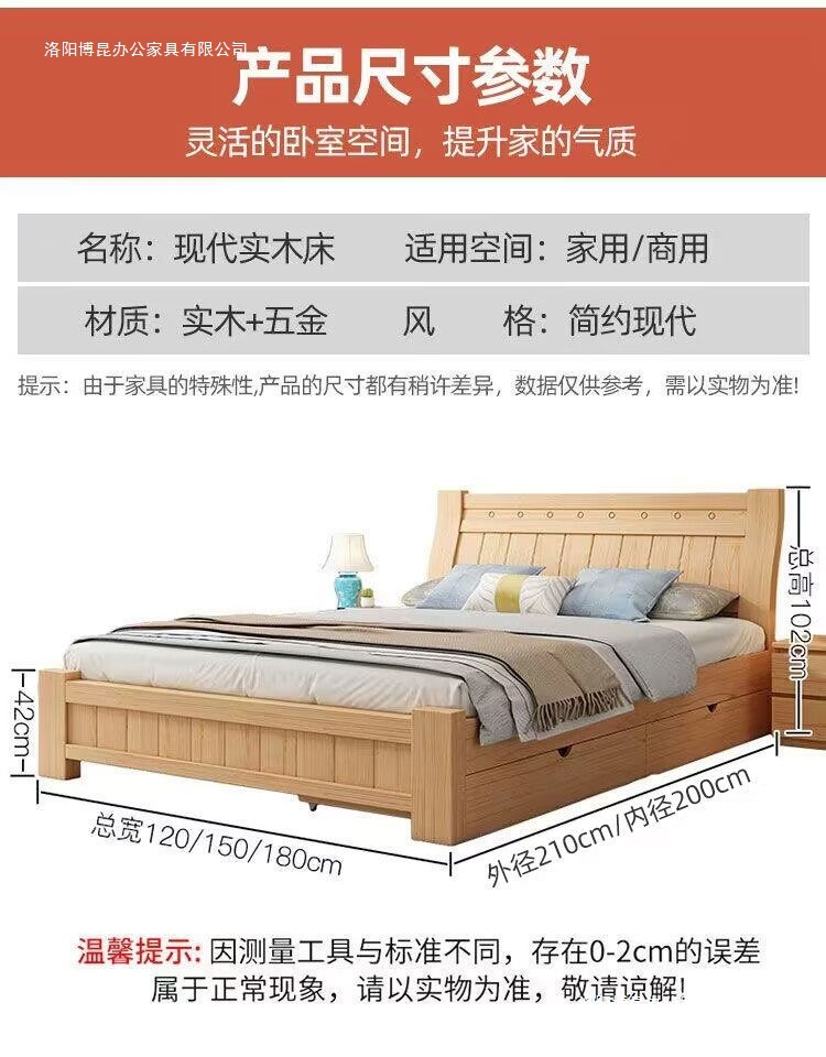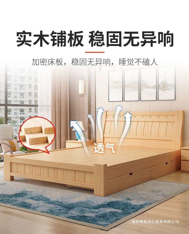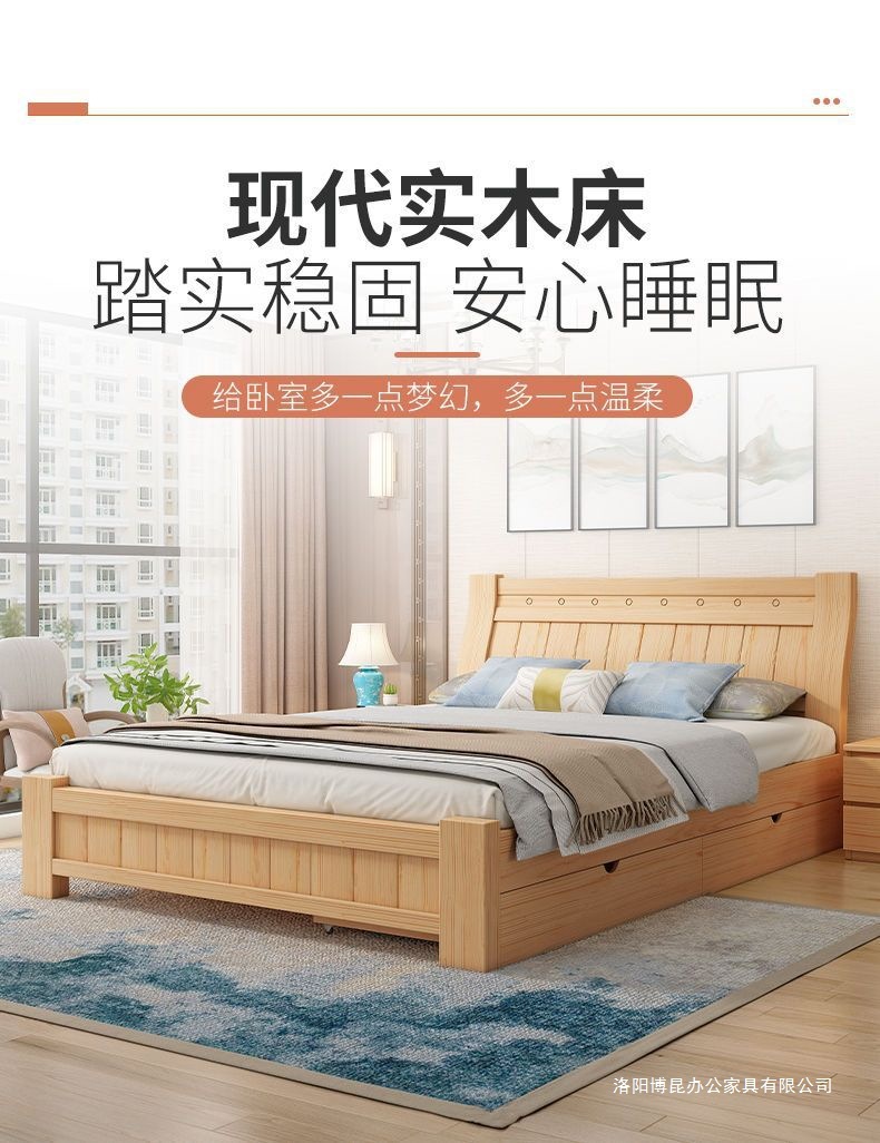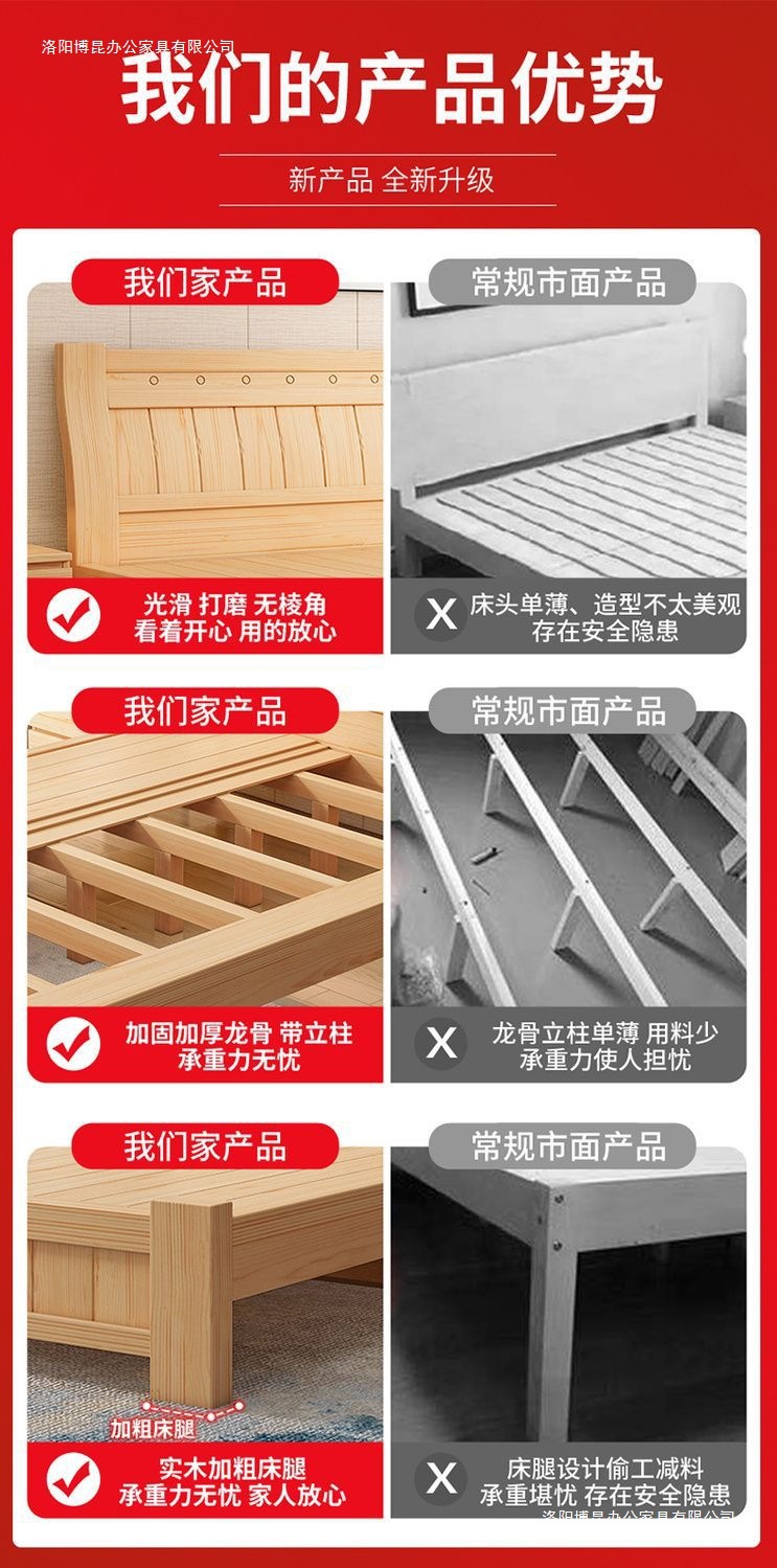 원목침대, 마이소나무 더블침대, 모던하고 심플한 경제적인 임대주택 심플한 순수 원목 싱글침대스토어 가기