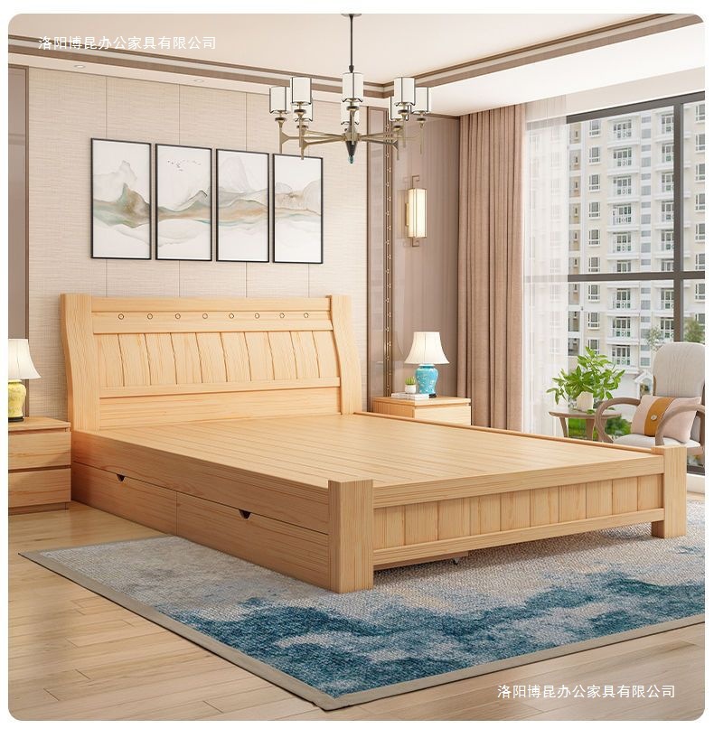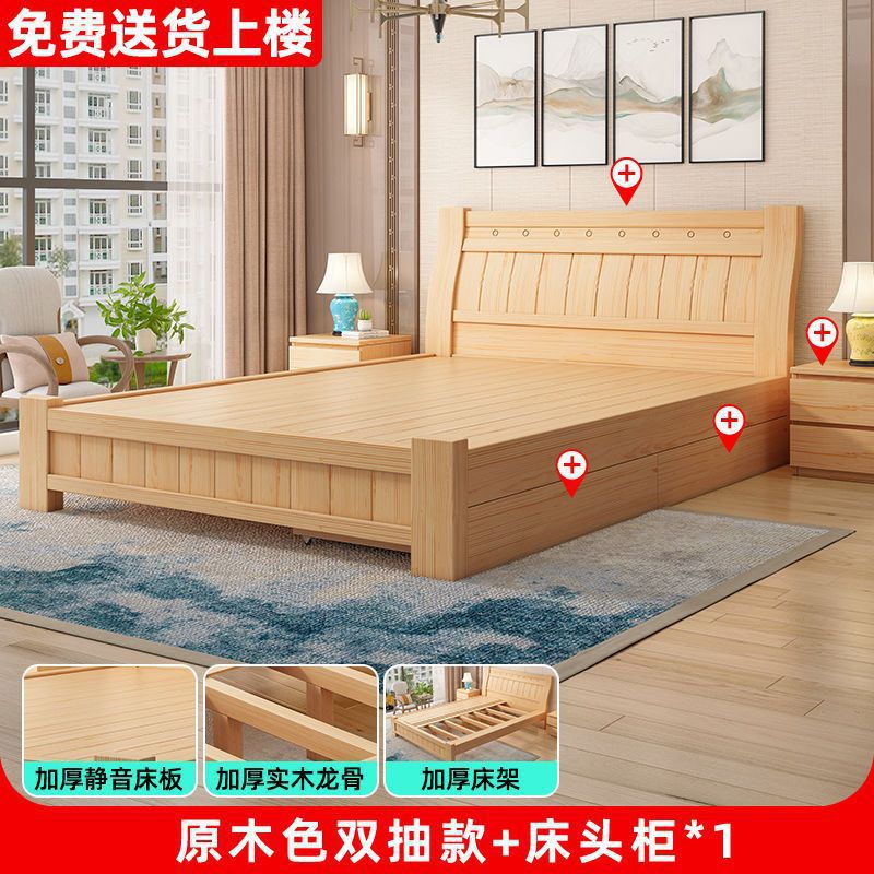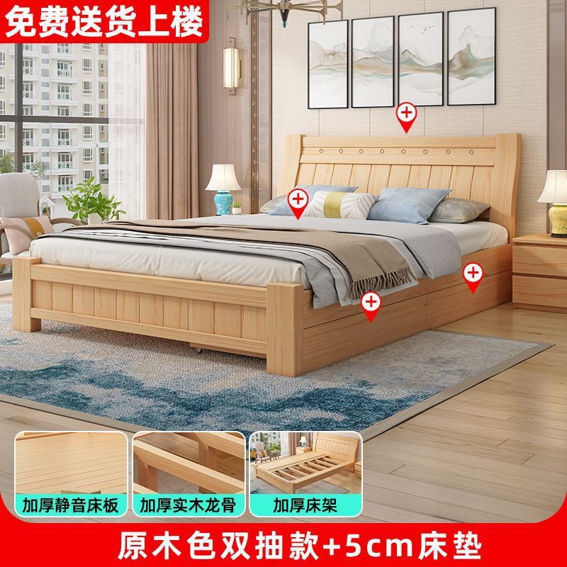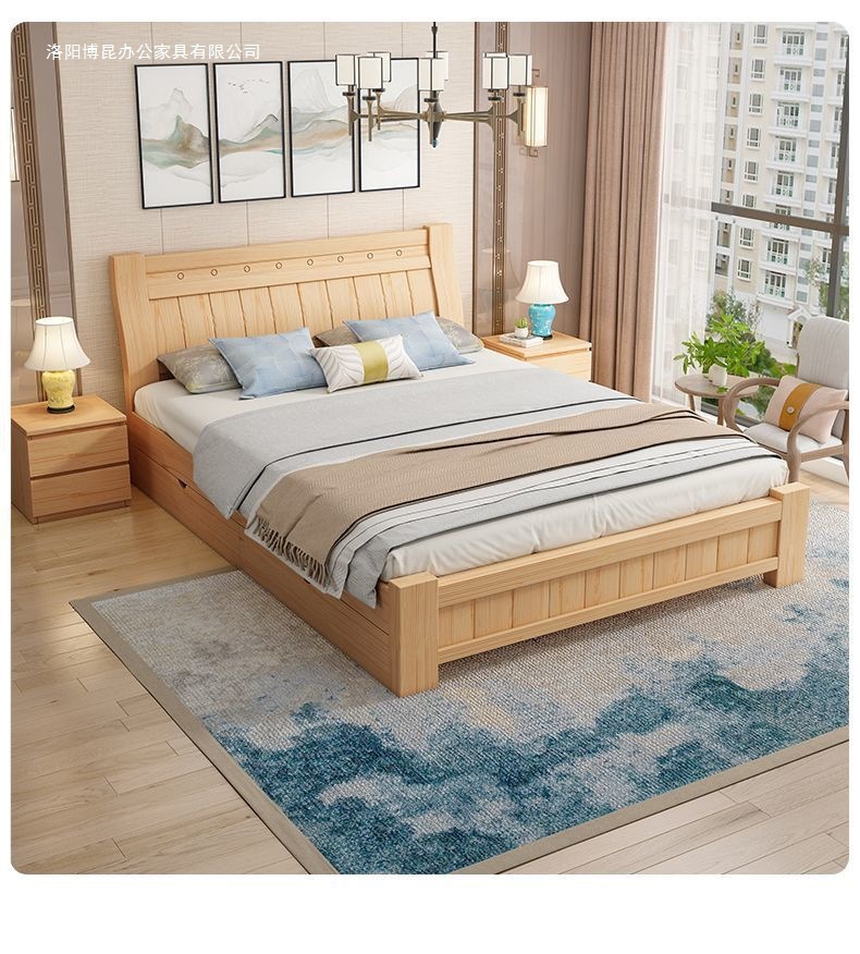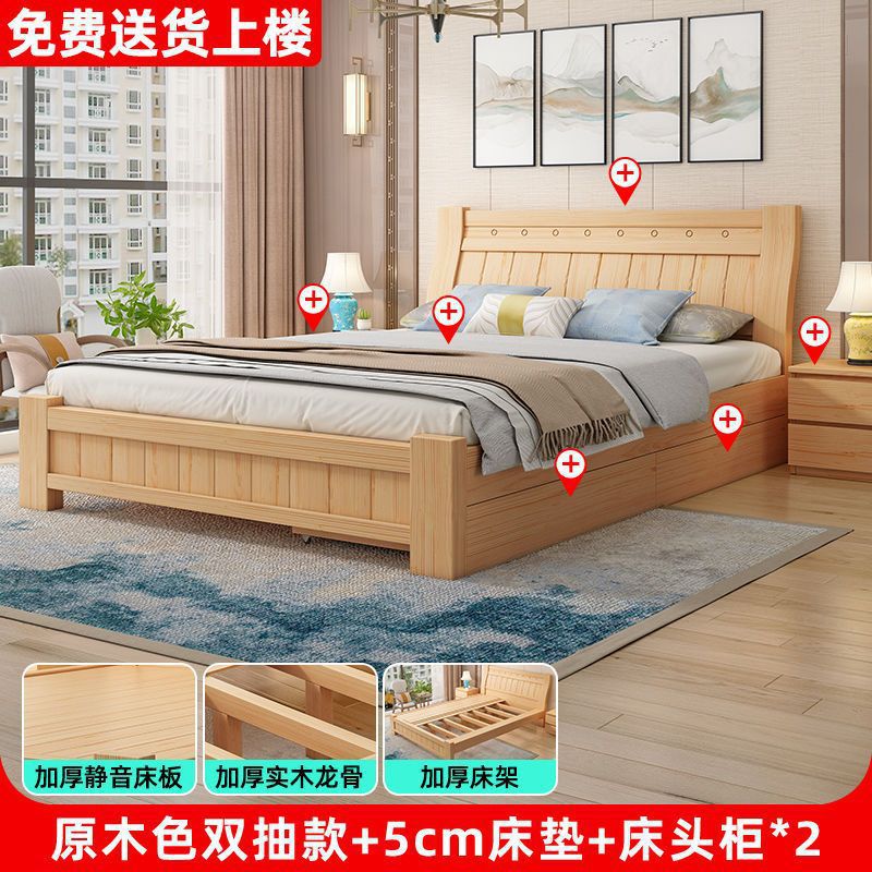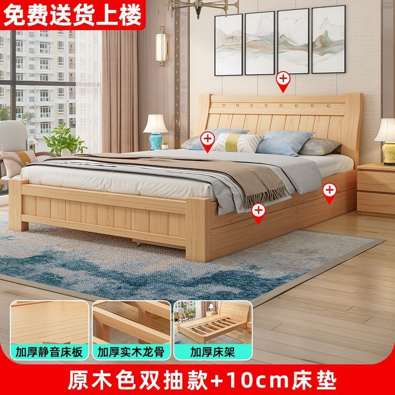 원목침대, 마이소나무 더블침대, 모던하고 심플한 경제적인 임대주택 심플한 순수 원목 싱글침대