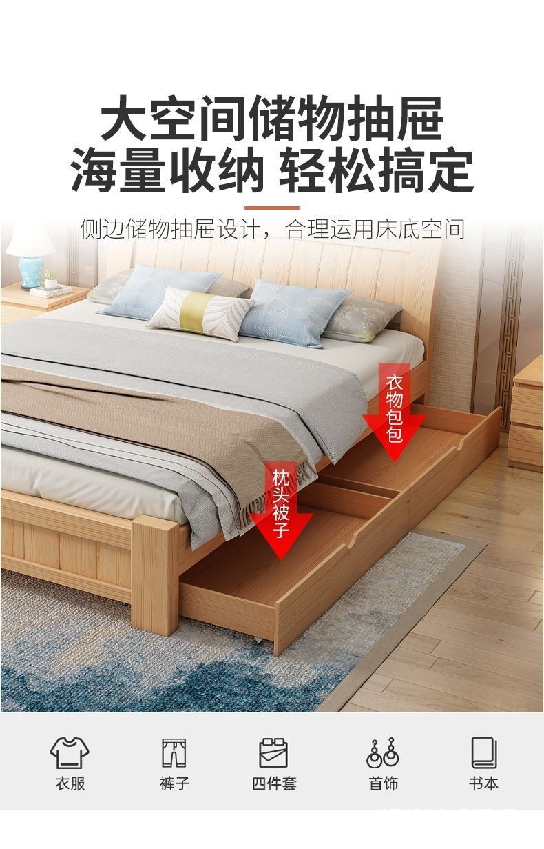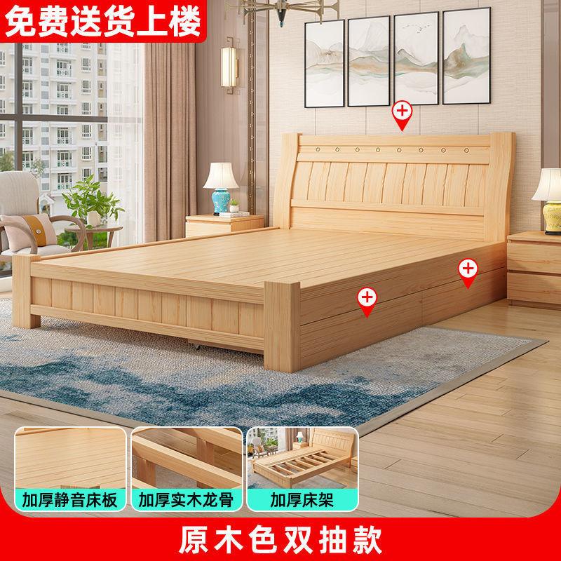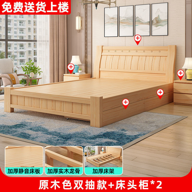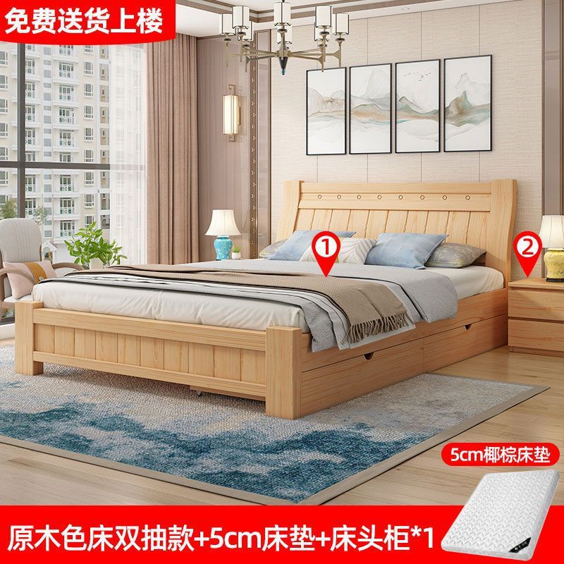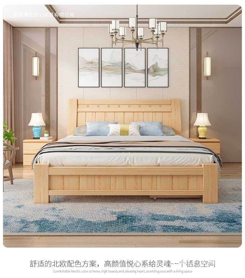 원목침대, 마이소나무 더블침대, 모던하고 심플한 경제적인 임대주택 심플한 순수 원목 싱글침대