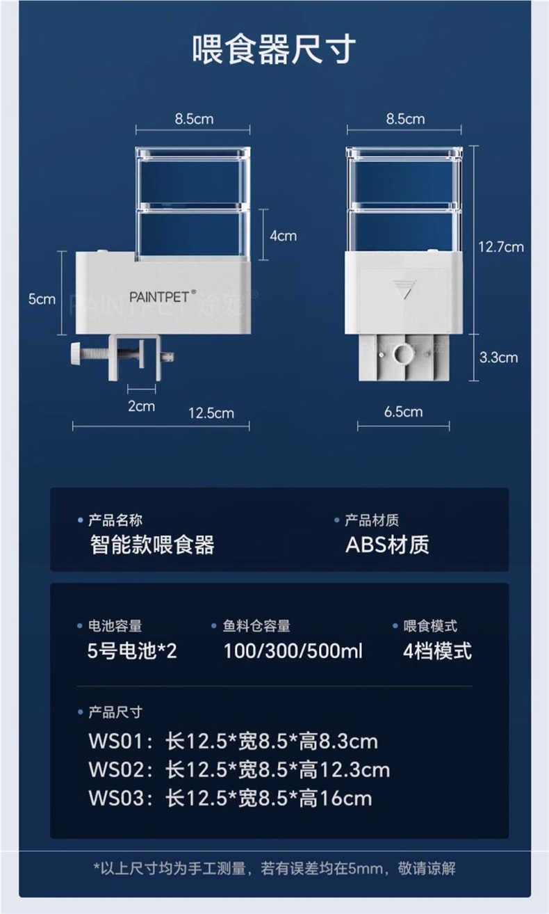 • [업그레이드된 지능형 4단 타이밍] 자동 공급 장치 500ml 대형 식품 창고 + 1mm 물고기 사료 120g