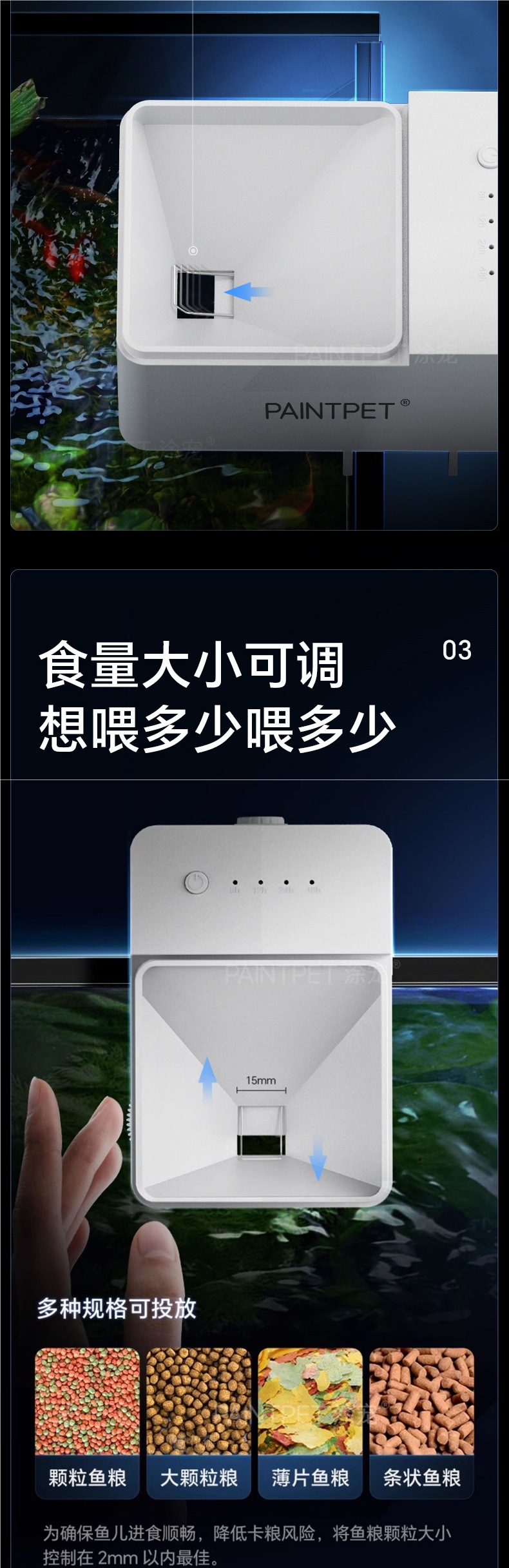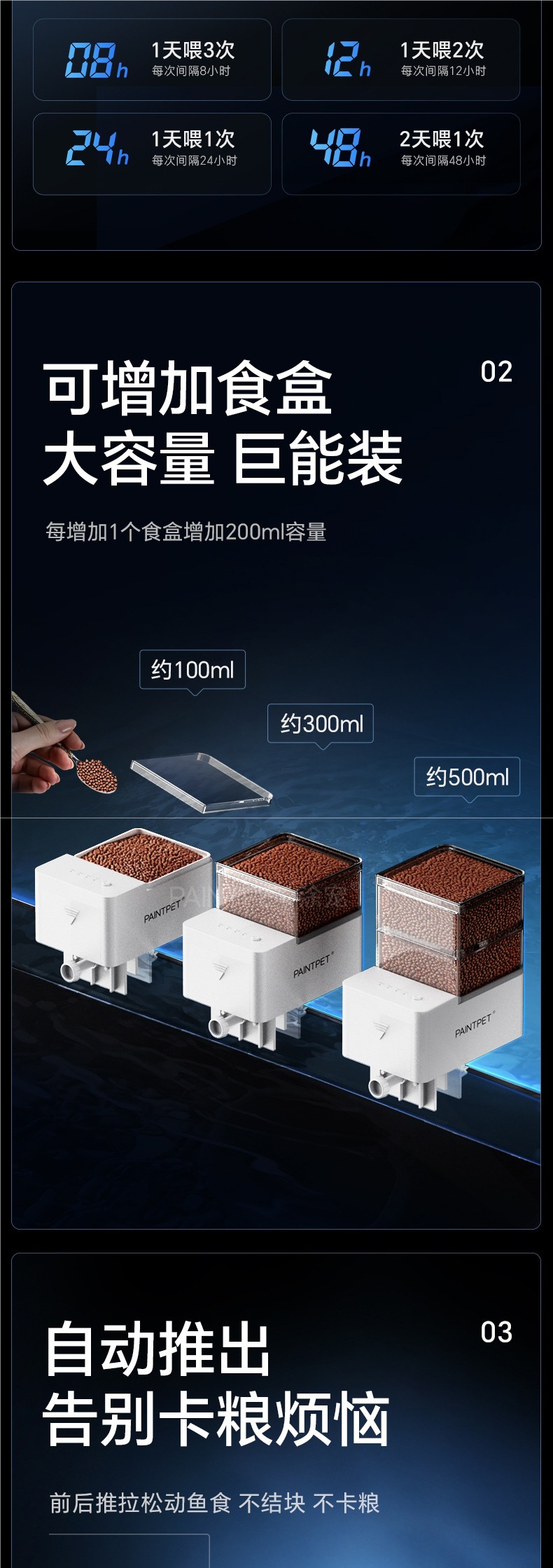 • [업그레이드된 지능형 4단 타이밍] 자동 공급기 300ml 대형 식품통 + 1mm 생선사료 120g