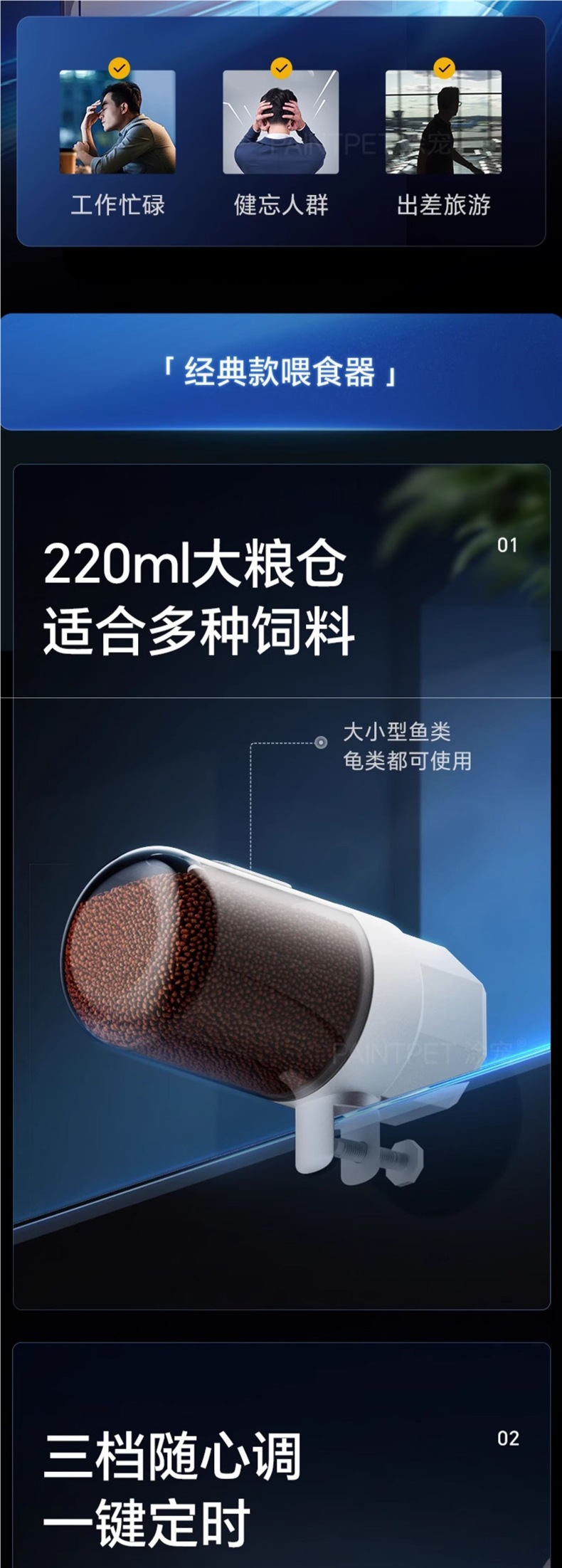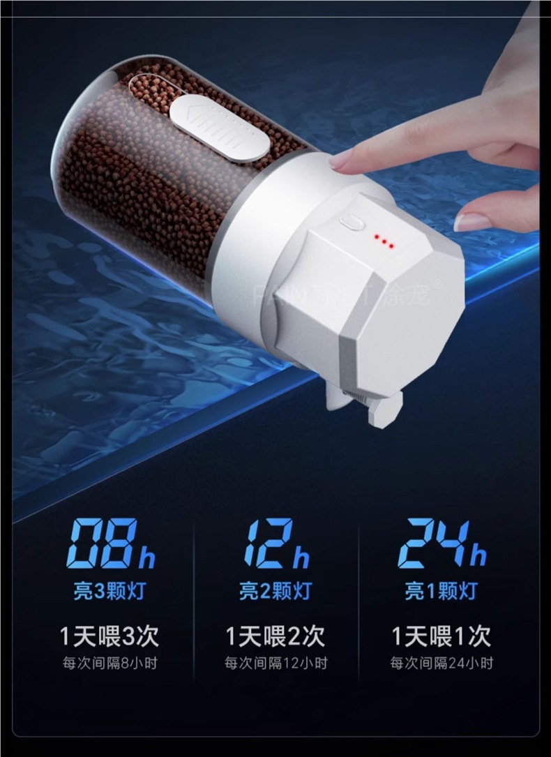 • [지능형 3단 타이밍] 자동 공급기 220ml 대형 식품통 + 0.5mm 어류 사료 130g