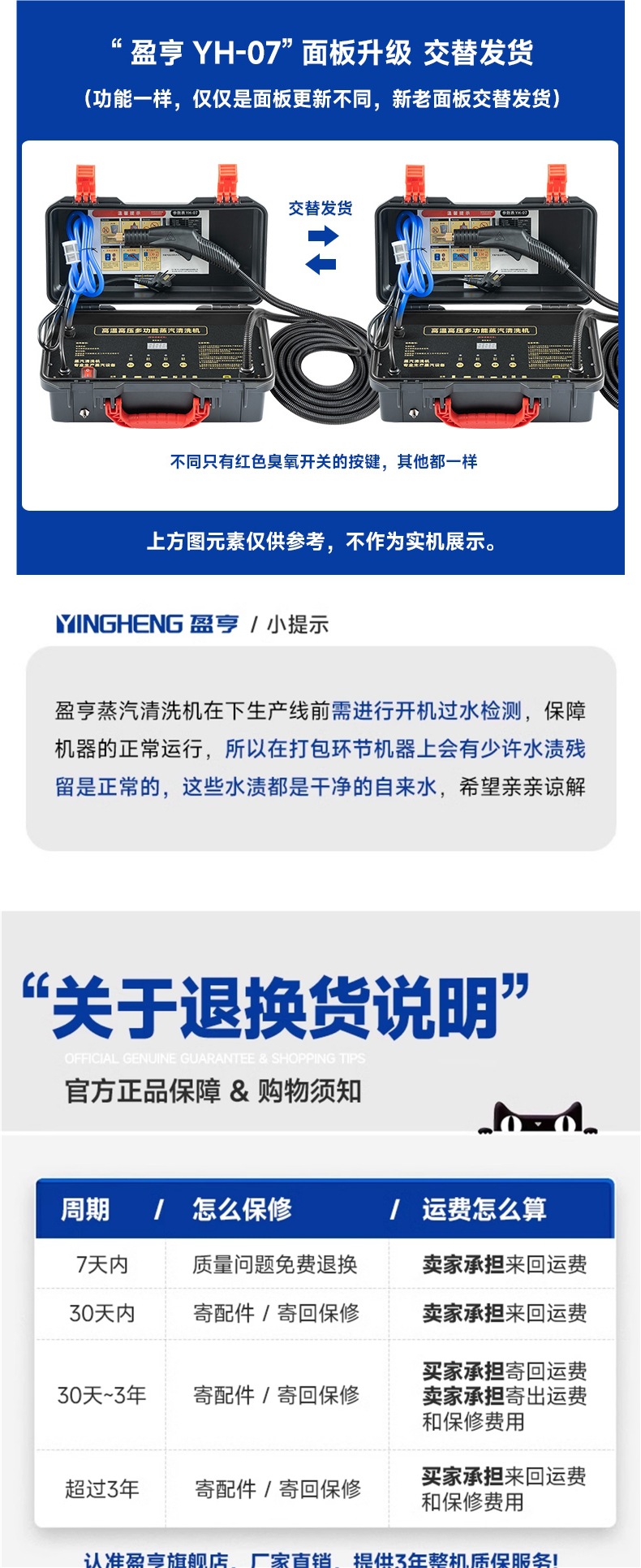 • 50KG 고압 휴대용 하드커버 3500W [온도 표시 + 오존 + 펄스 + 스팀 + 온수 및 냉수] 전체 제어 핸들 + 음성