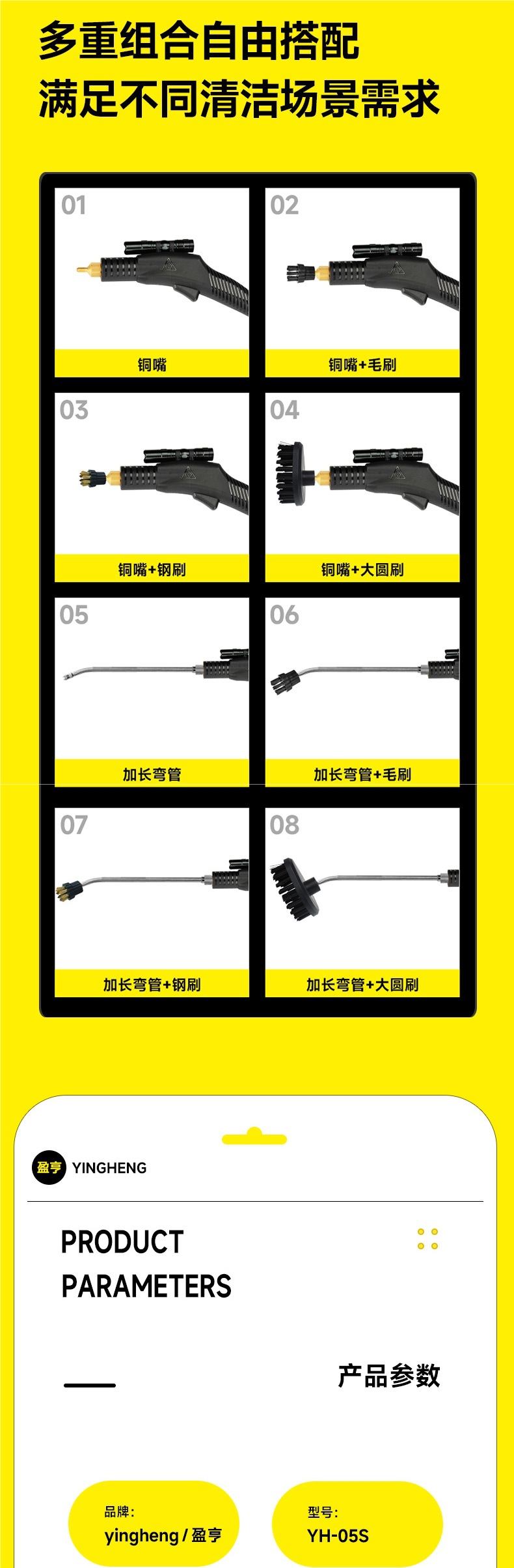 • 100KG 고압 타이로드 하이 구성 + 바닥 세척 난방 파이프 3500W [온도 표시 + 오존 + 펄스 + 스팀 + 냉온수] 핸들 전체 제어 + 음성
