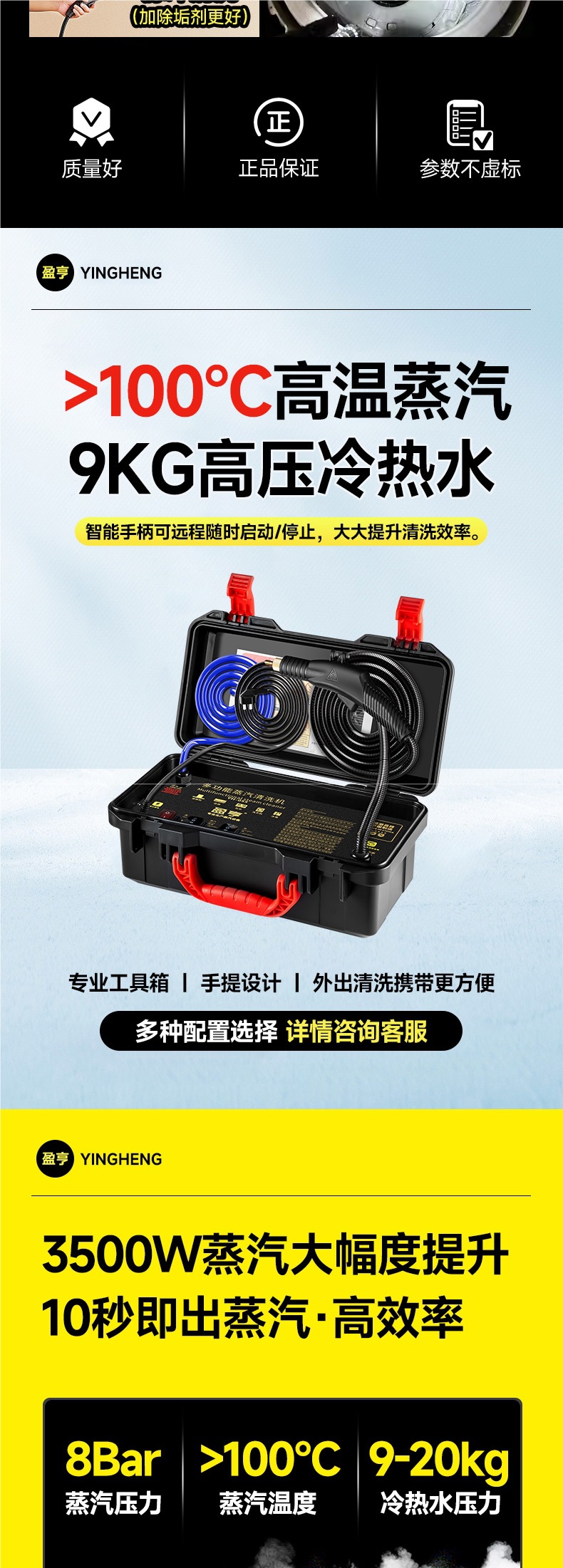 • 최고 주파수 변환 모델 100KG 고압 트롤리 케이스 3500W [모든 기능] 가전 제품 + 바닥 난방 청소