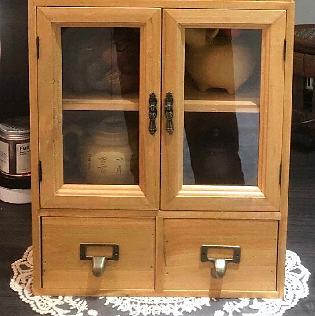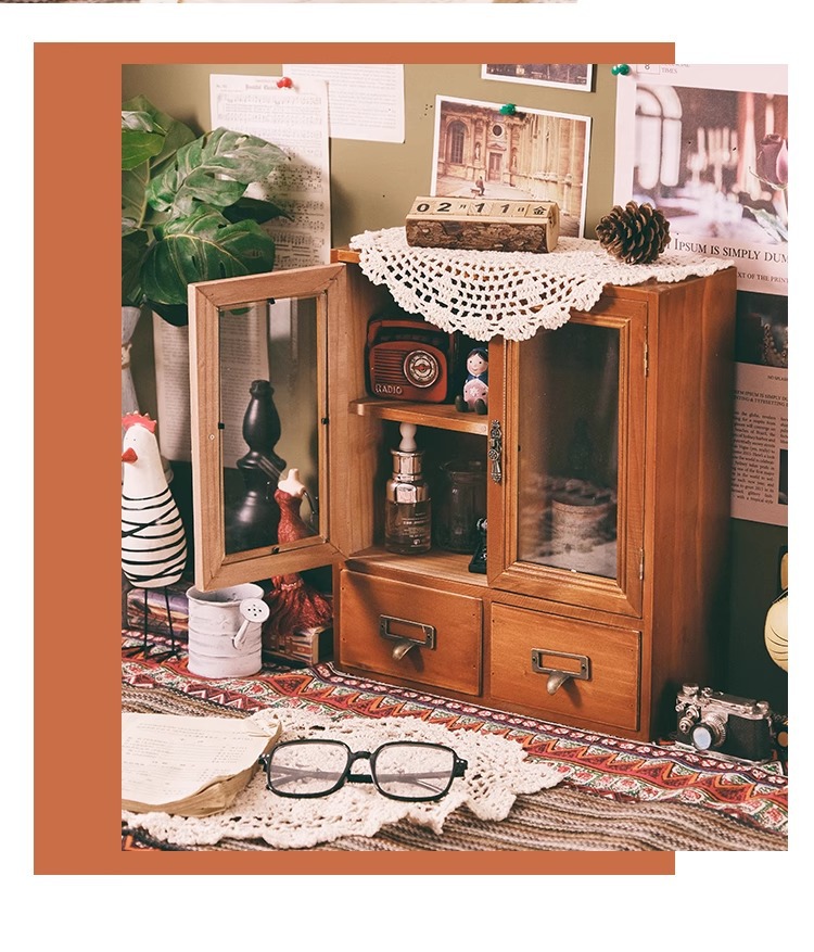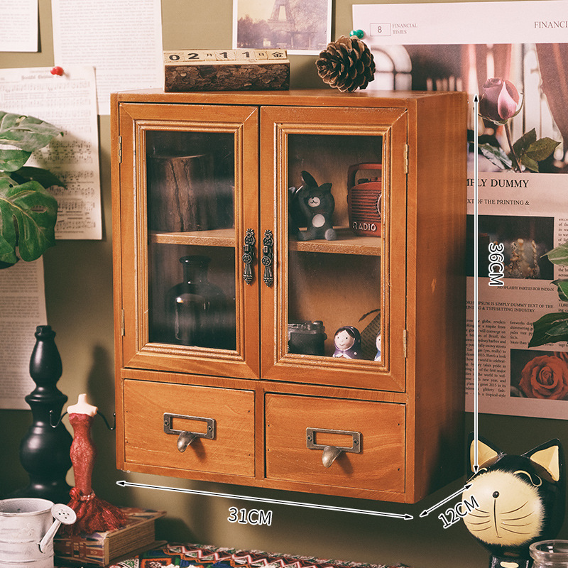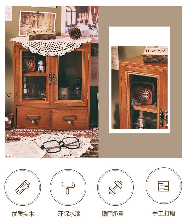 레트로 데스크탑 스토리지 박스 단단한 나무 향수 컵 스토리지 캐비닛 화장품 사무실 나무 책상 스토리지 랙스토어 가기
