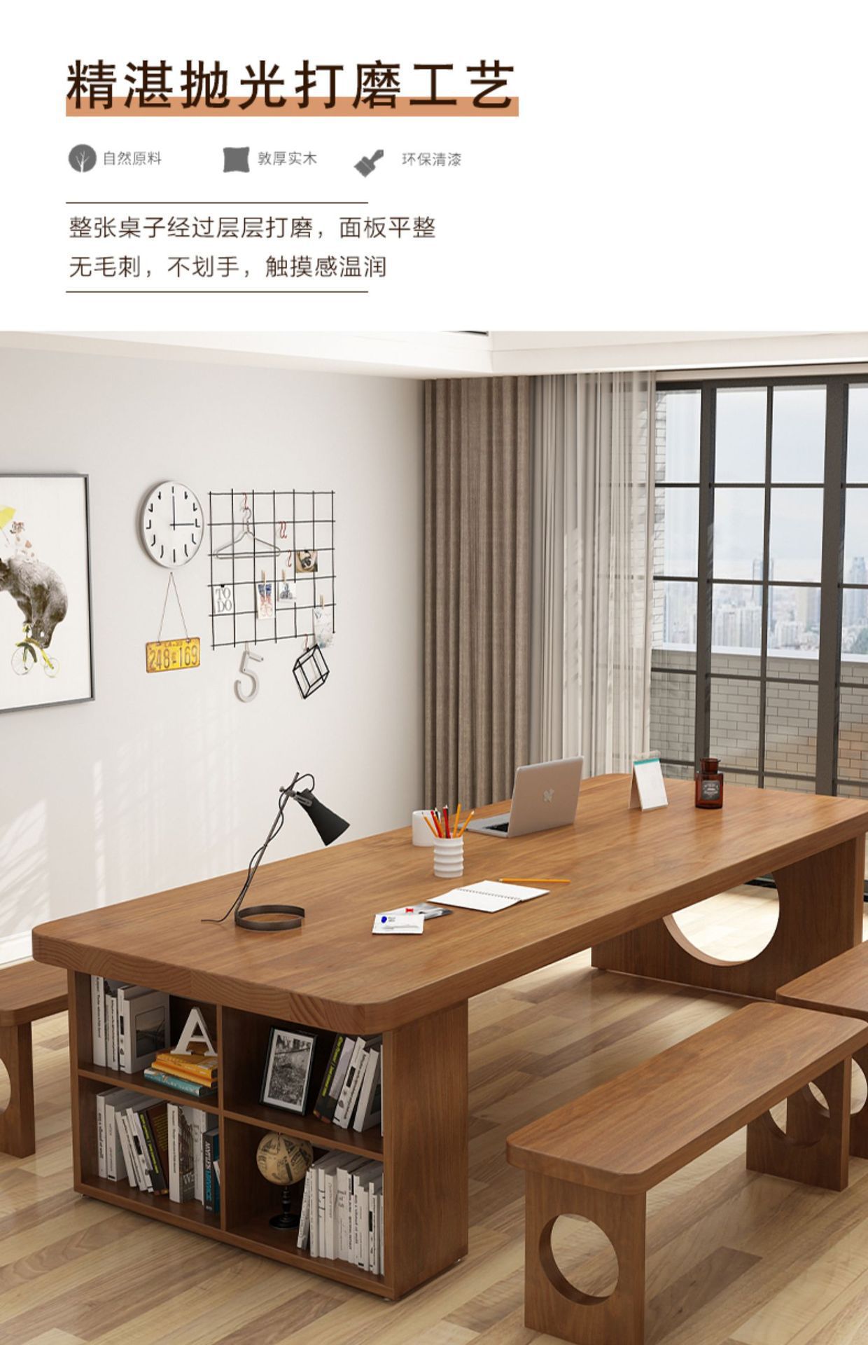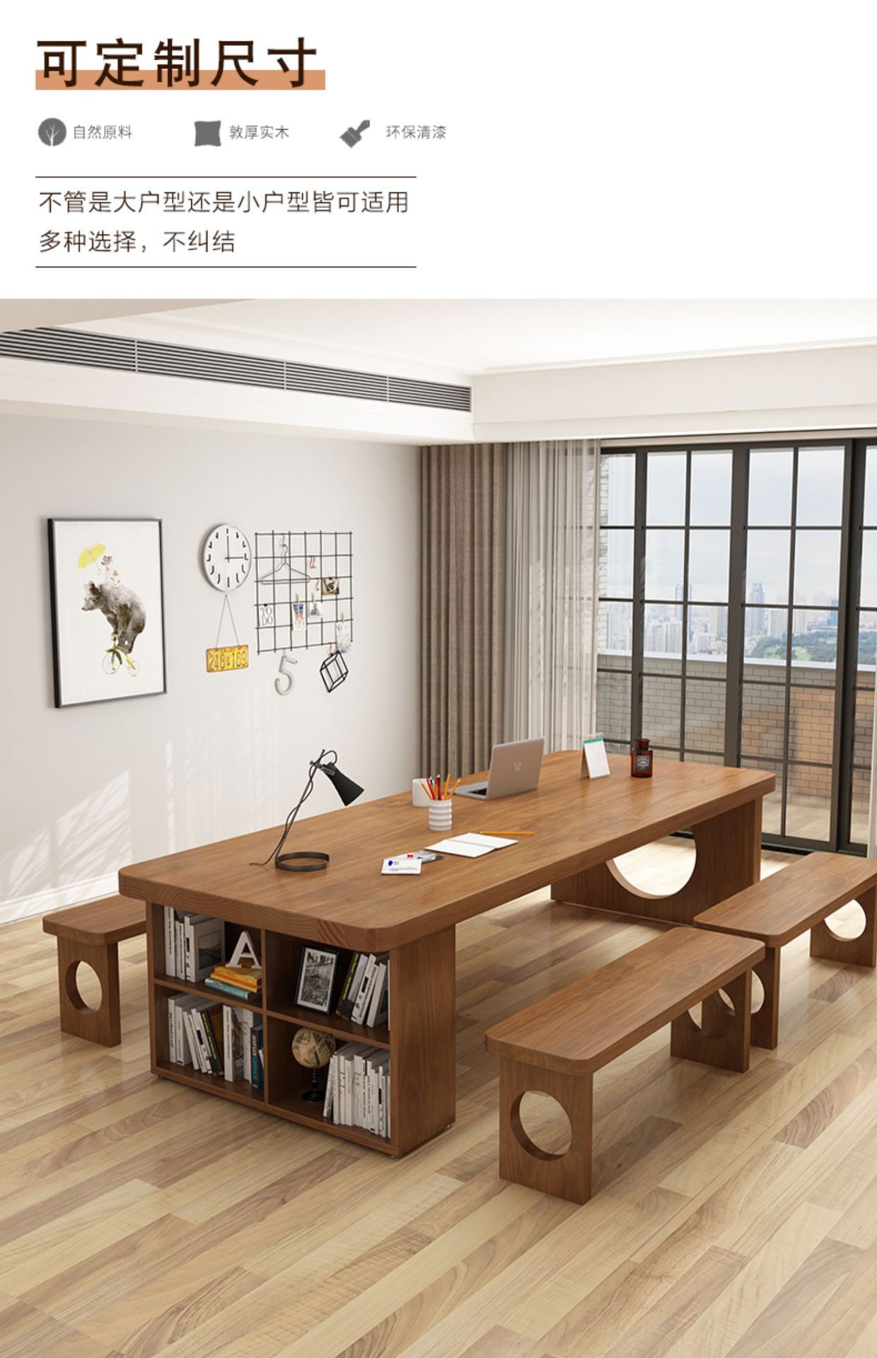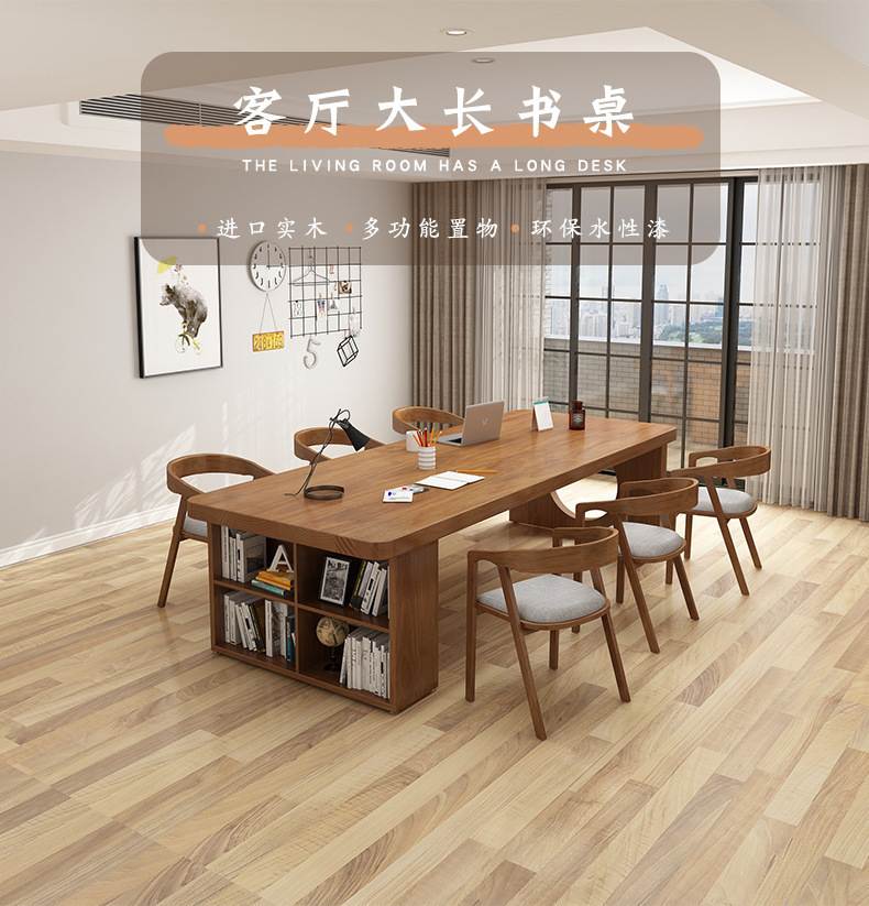 [공장 가공 및 맞춤형] 거실 목재 커피 테이블 및 책장 통합 가정용 긴 테이블 테이블 더블 책상
