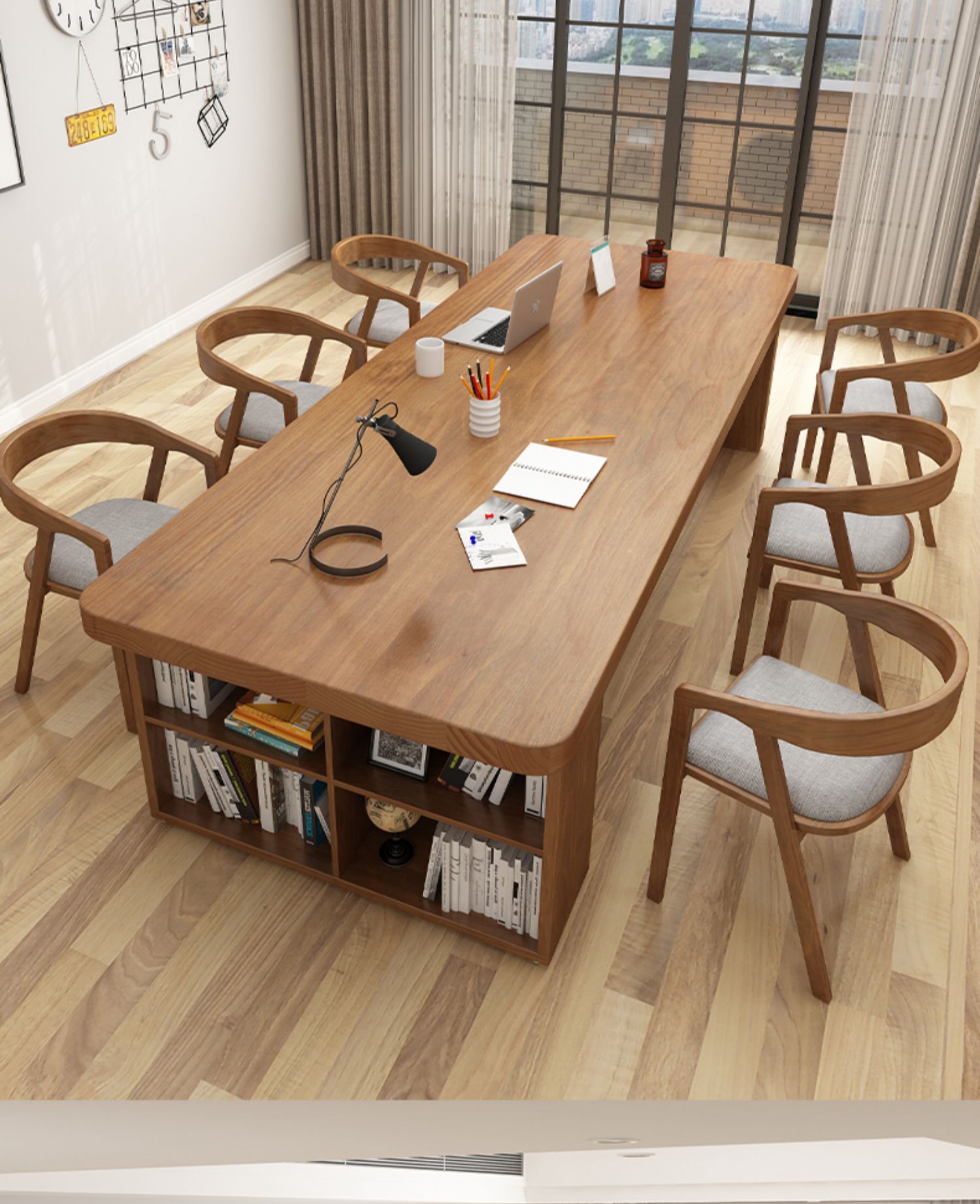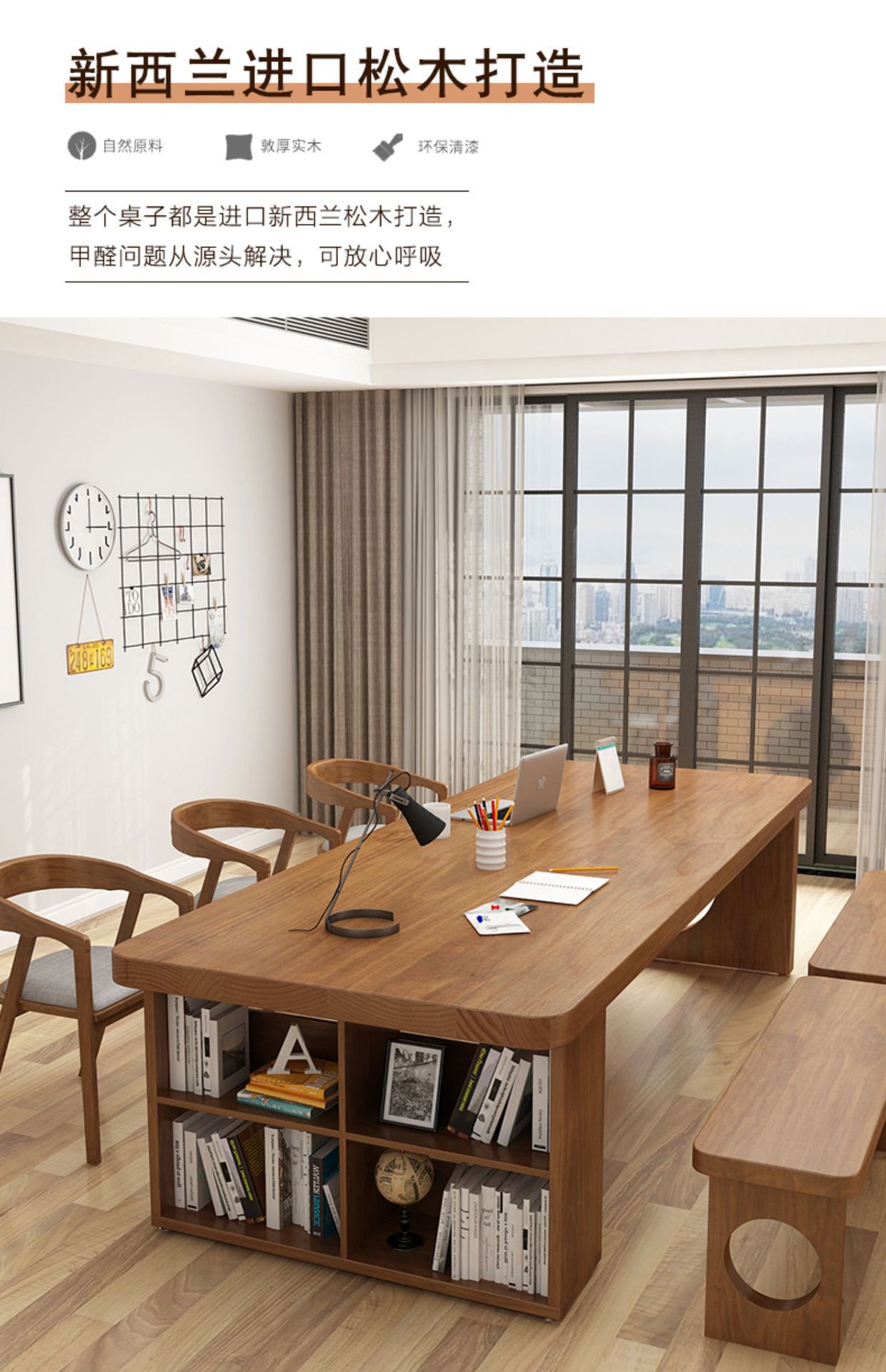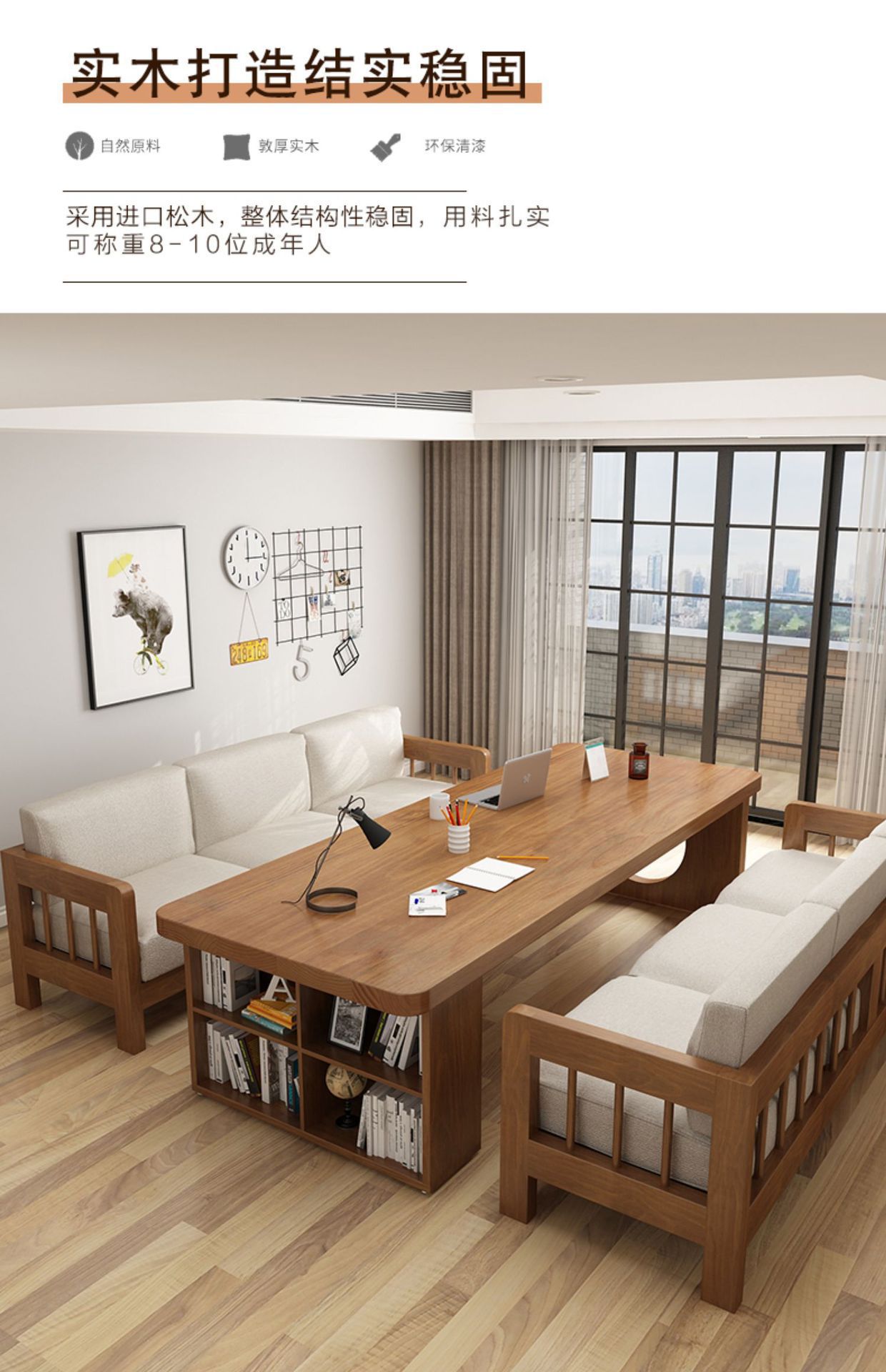 [공장 가공 및 맞춤형] 거실 목재 커피 테이블 및 책장 통합 가정용 긴 테이블 테이블 더블 책상