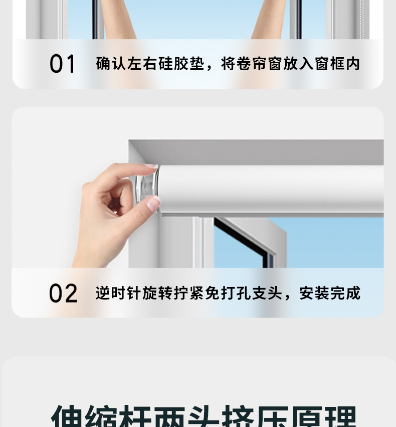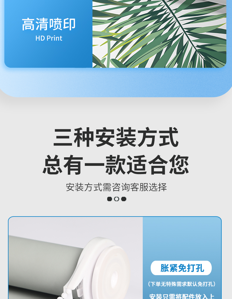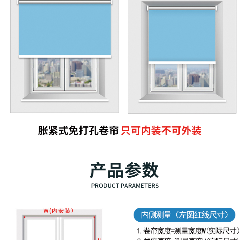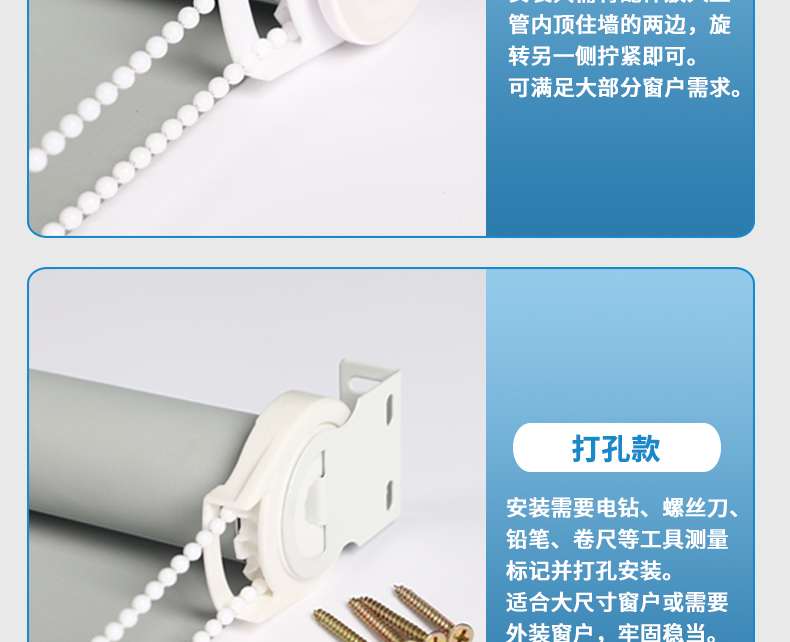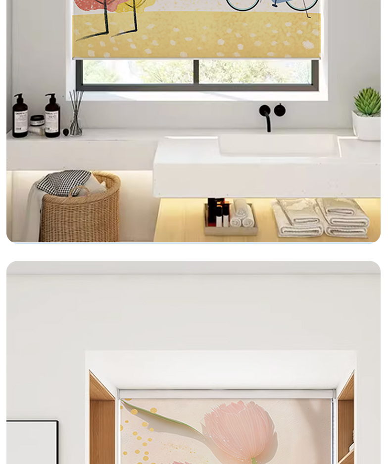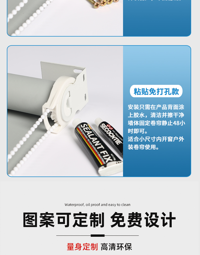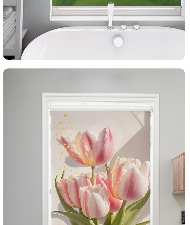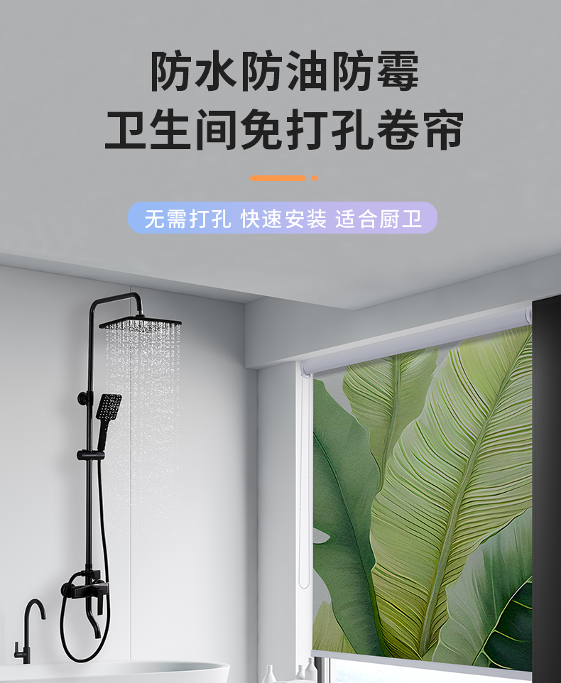 ♤ 롤러 블라인드, 욕실 차단 커튼, 완전 차광 롤 블라인드, 화장실, 욕실, 주방, 침실, 펀치 없음