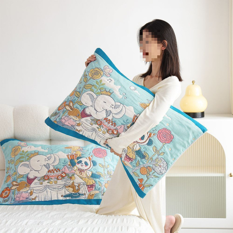 엄마와 아기 등급 8겹 면 거즈 베개 커버, 고급 만화 귀여운 부드러운 땀 방지 면 두꺼운 베개 커버, 무료 배송스토어 가기