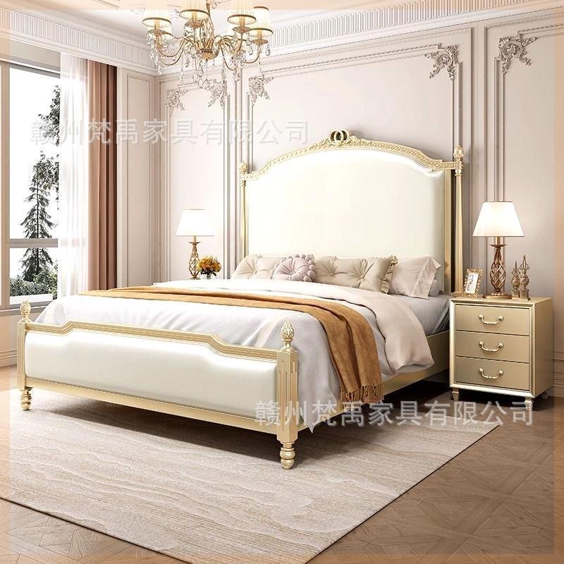 미국식 가벼운 고급 단단한 나무 침대, 가정용 마스터 침실 웨딩 침대, 심플한 프렌치 럭셔리 가죽 소프트 침대, 하이박스 수납 침대스토어 가기