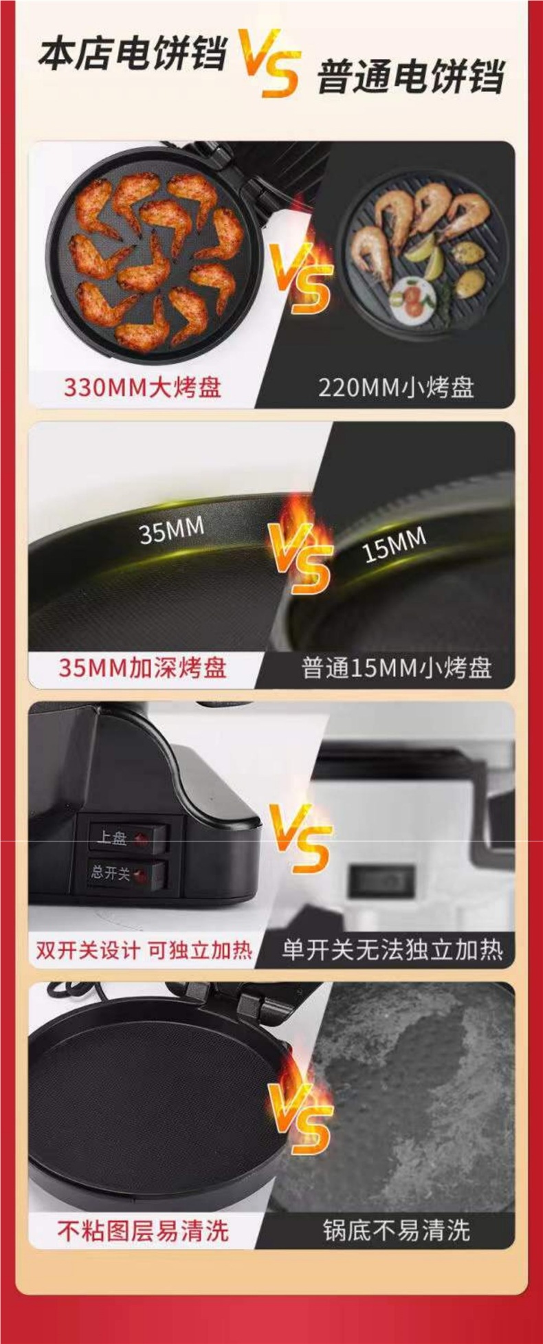 무료 배송 전기 베이킹 팬 가정용 양면 가열, 깊고 다기능 전기 베이킹 팬케이크 팬 팬케이크 기계 팬케이크 팬스토어 가기