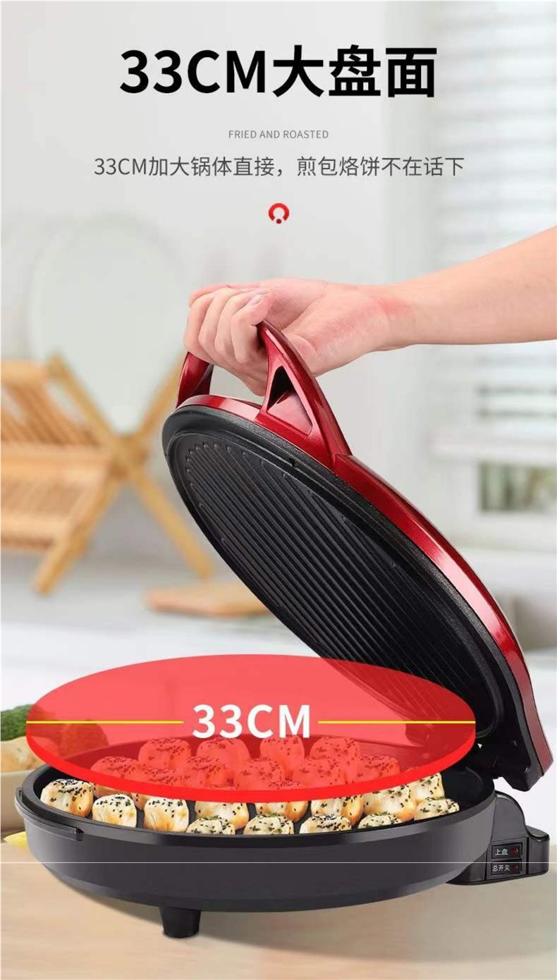 무료 배송 전기 베이킹 팬 가정용 양면 가열, 깊고 다기능 전기 베이킹 팬케이크 팬 팬케이크 기계 팬케이크 팬