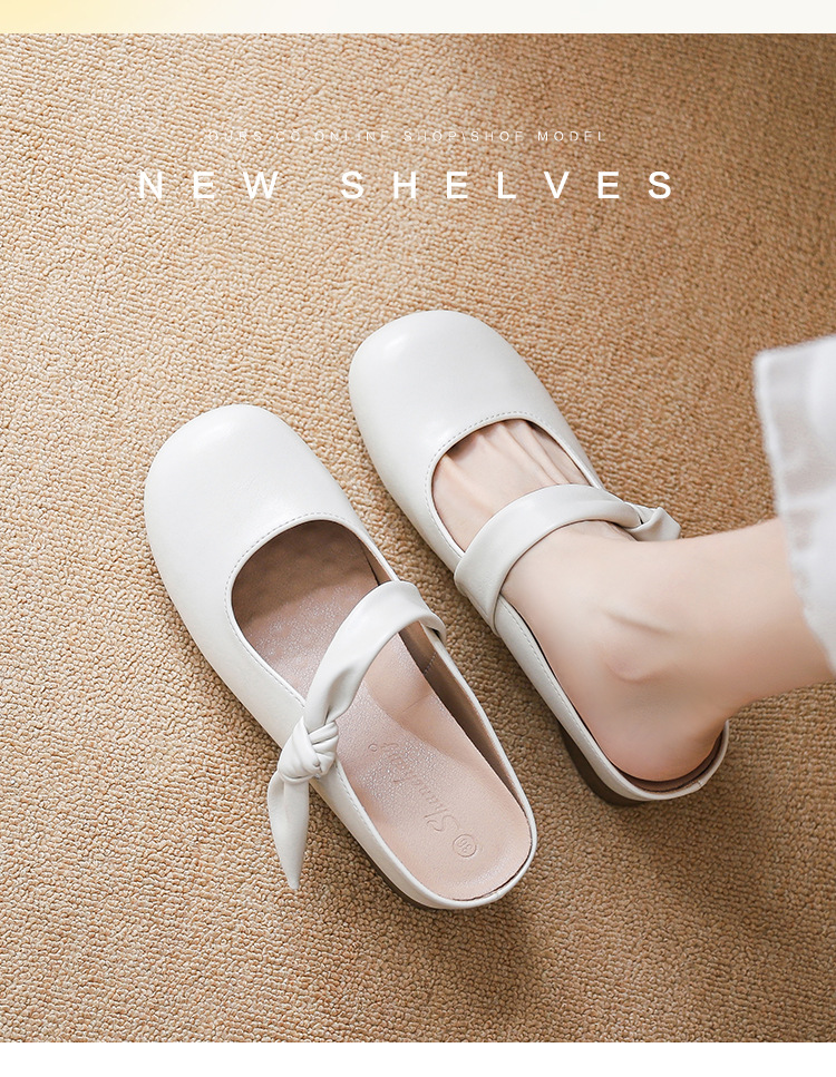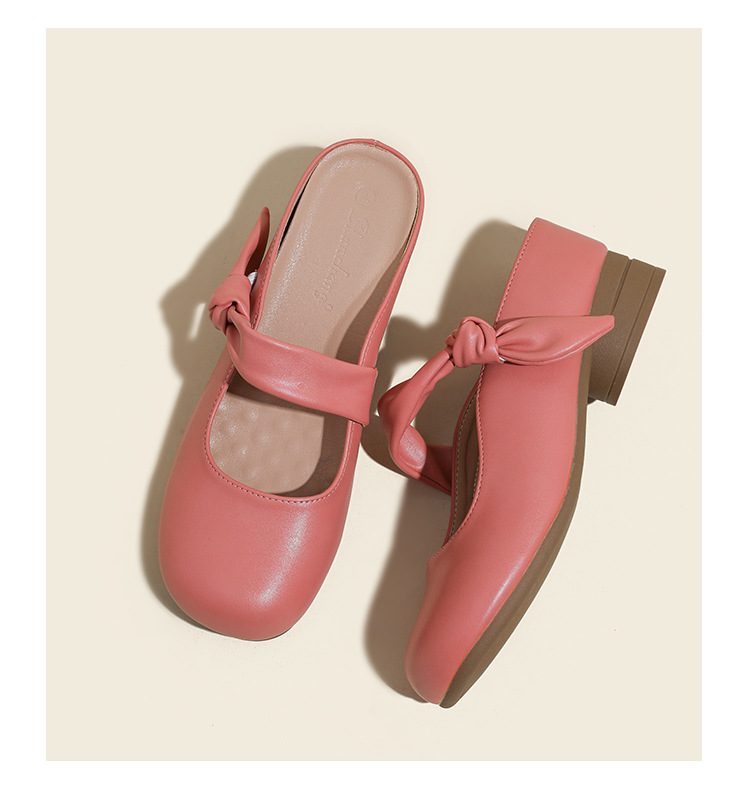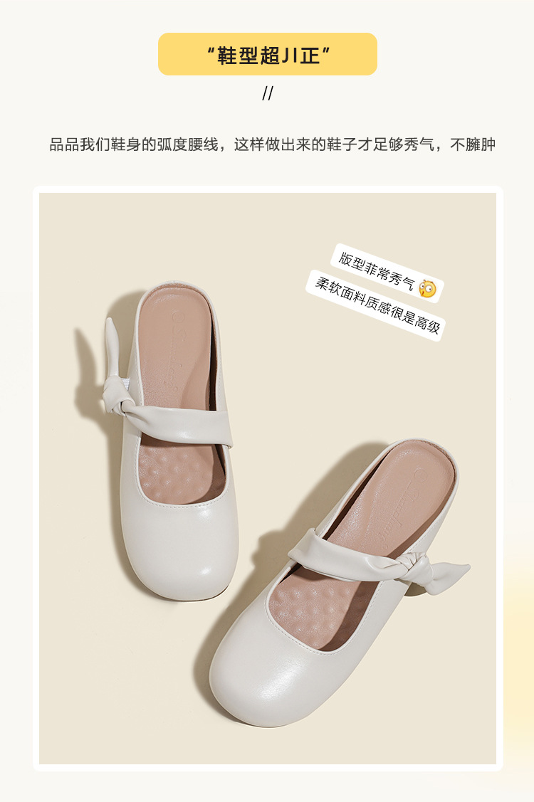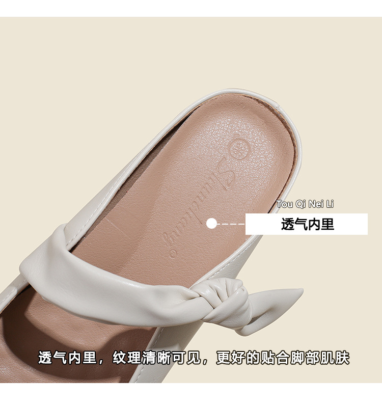 2025 여름 부드러운 스타일의 여성용 리본매듭 슬리퍼, 발가락 반슬리퍼, 뮬 슈즈, 레이지 슬리퍼스토어 가기