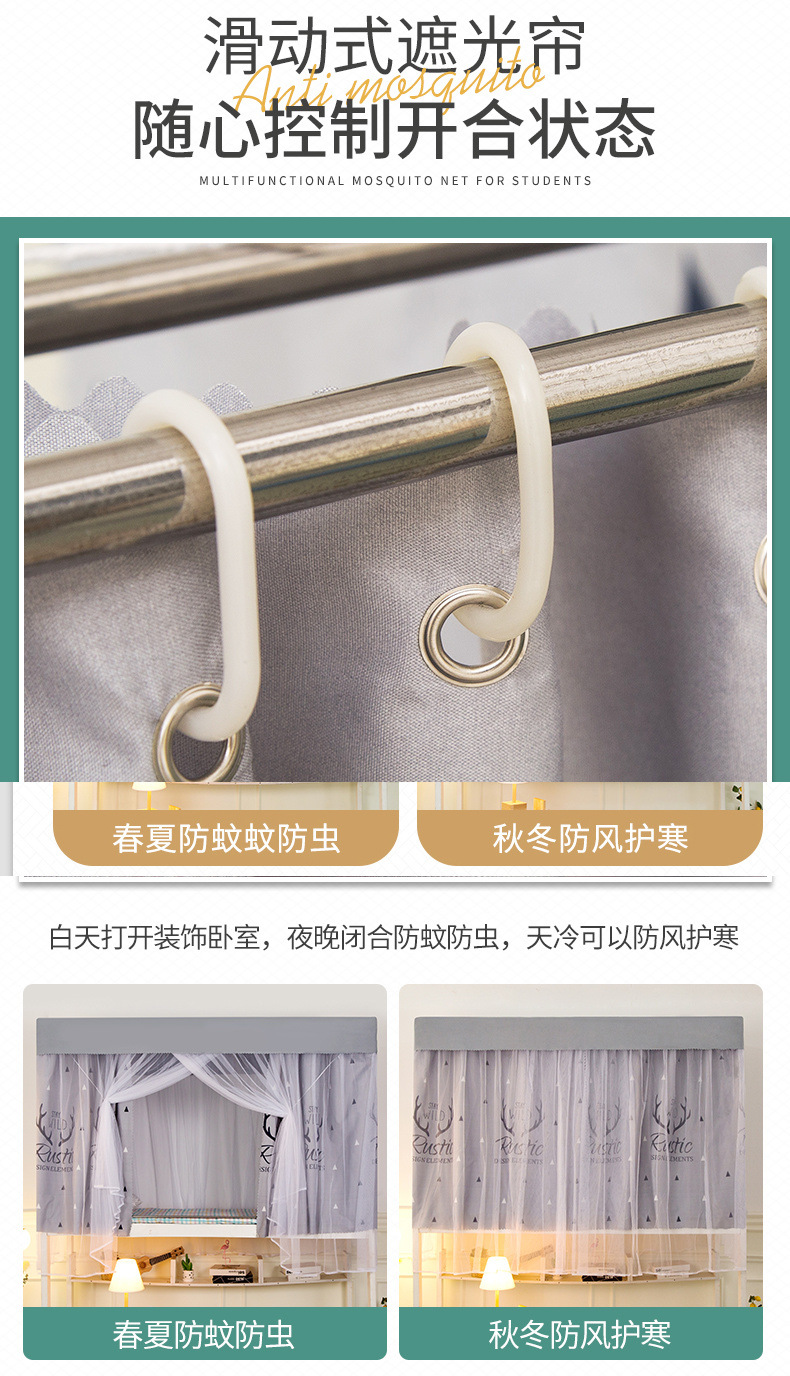 학생 기숙사 침대 커튼 모기장 일체형 스탠드 포함 이층 침대 블랙아웃 커튼 소년 소녀 싱글 침대 커튼 세트스토어 가기