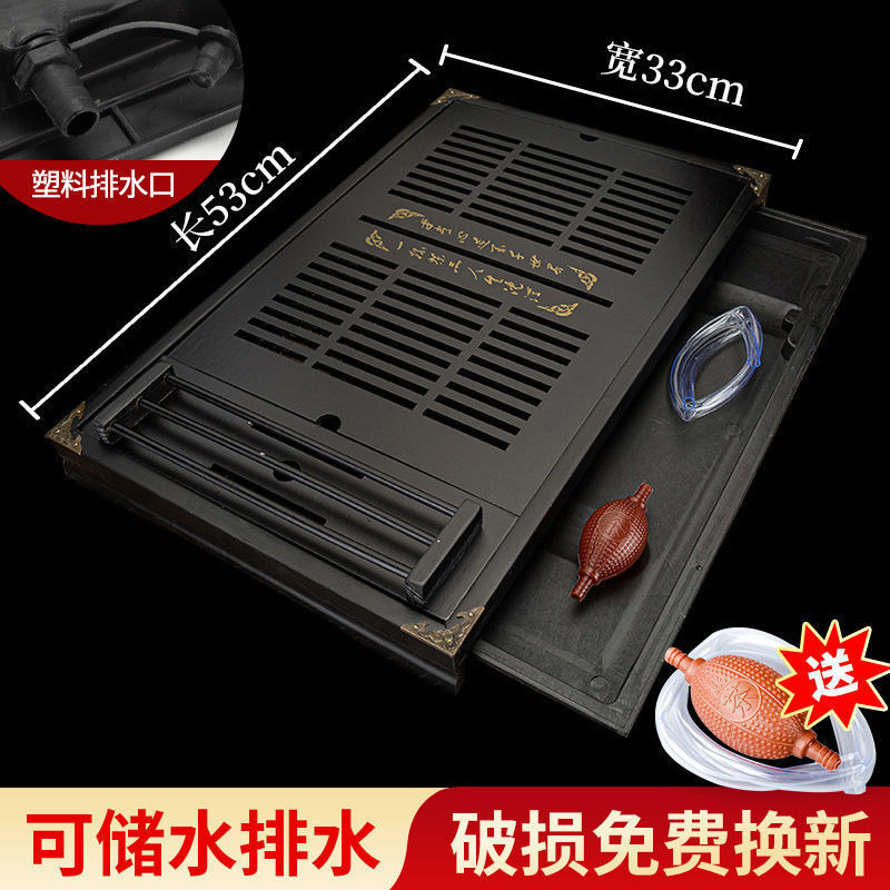 단단한 나무 차 트레이 가정용 차 테이블 새로운 배수 쿵푸 차 세트 트레이 세트 플라스틱 서랍 유형 물 저장 차 바다스토어 가기