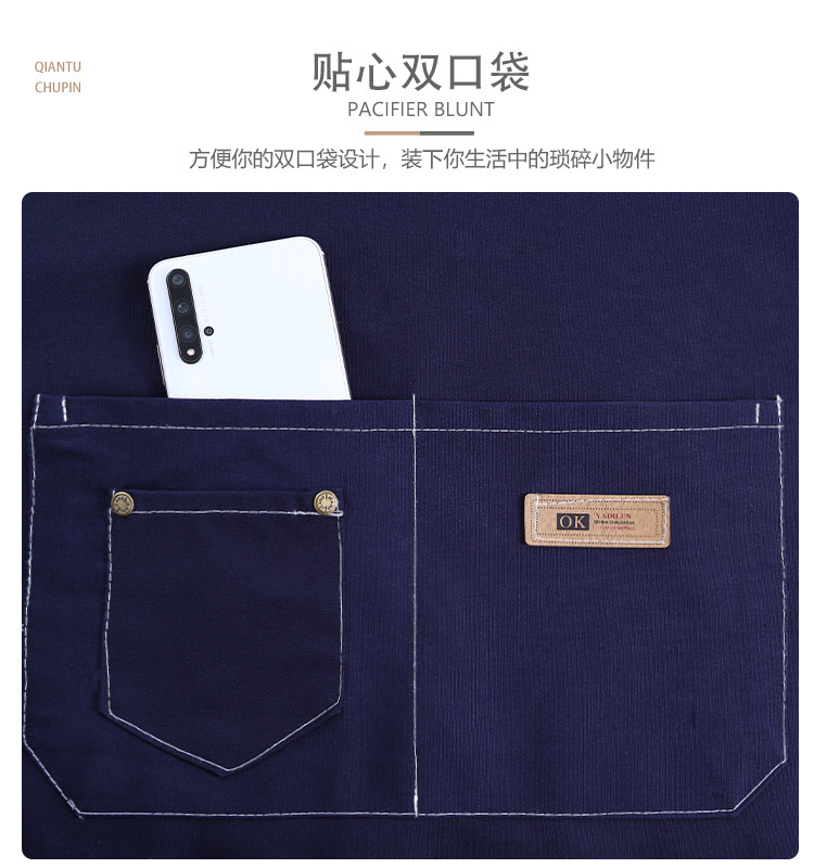 캔버스 방수 및 방유 앞치마 서양식 레스토랑 전골 레스토랑 밀크티 카페 웨이터 주방 앞치마 인쇄 로고스토어 가기