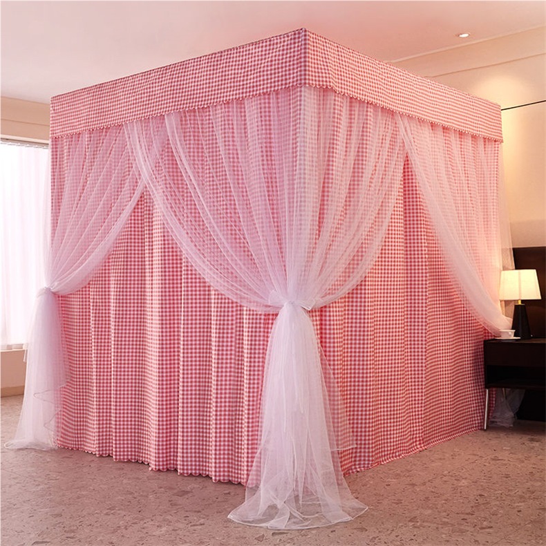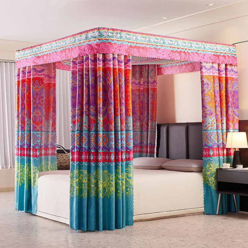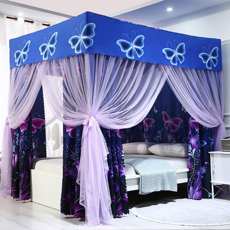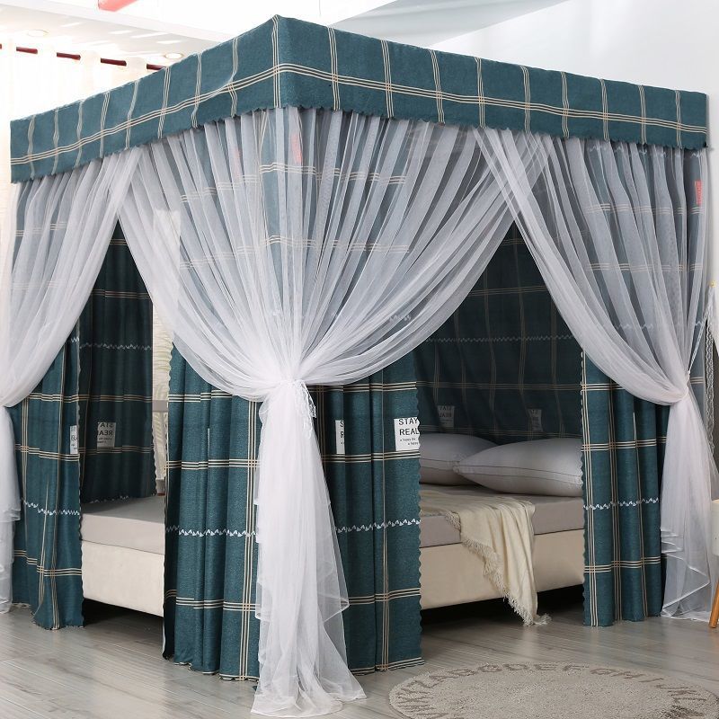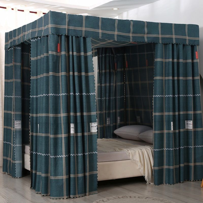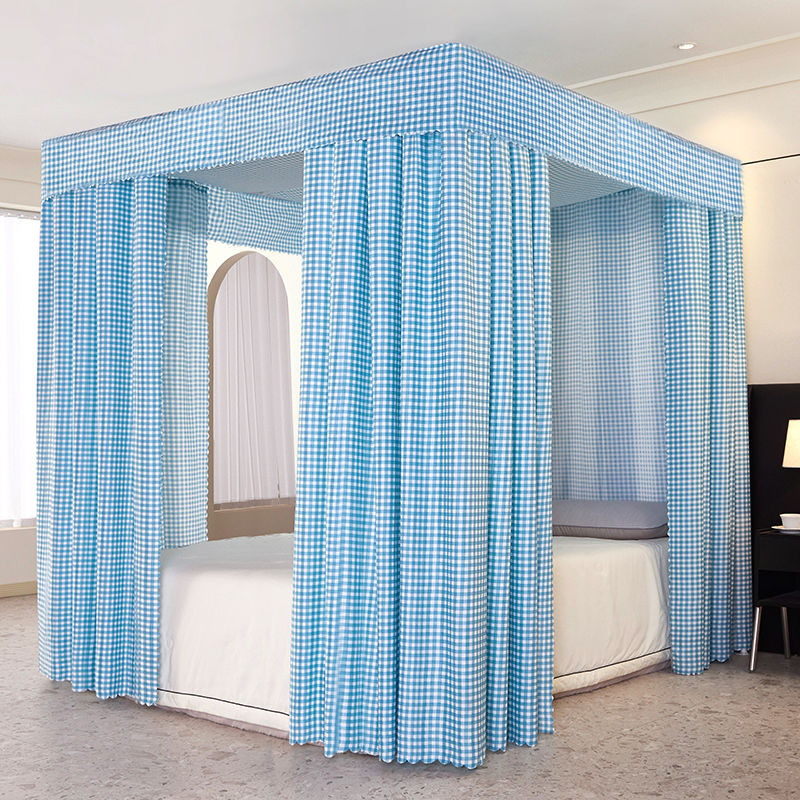 바닥부터 천장까지 차광 침대 커튼, 모기장, 일체형 침대 커튼, 기숙사 완전 밀폐형 3도어 방진 공주 소녀 스타일 3도어
