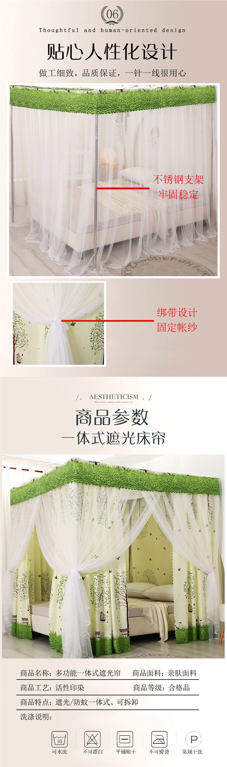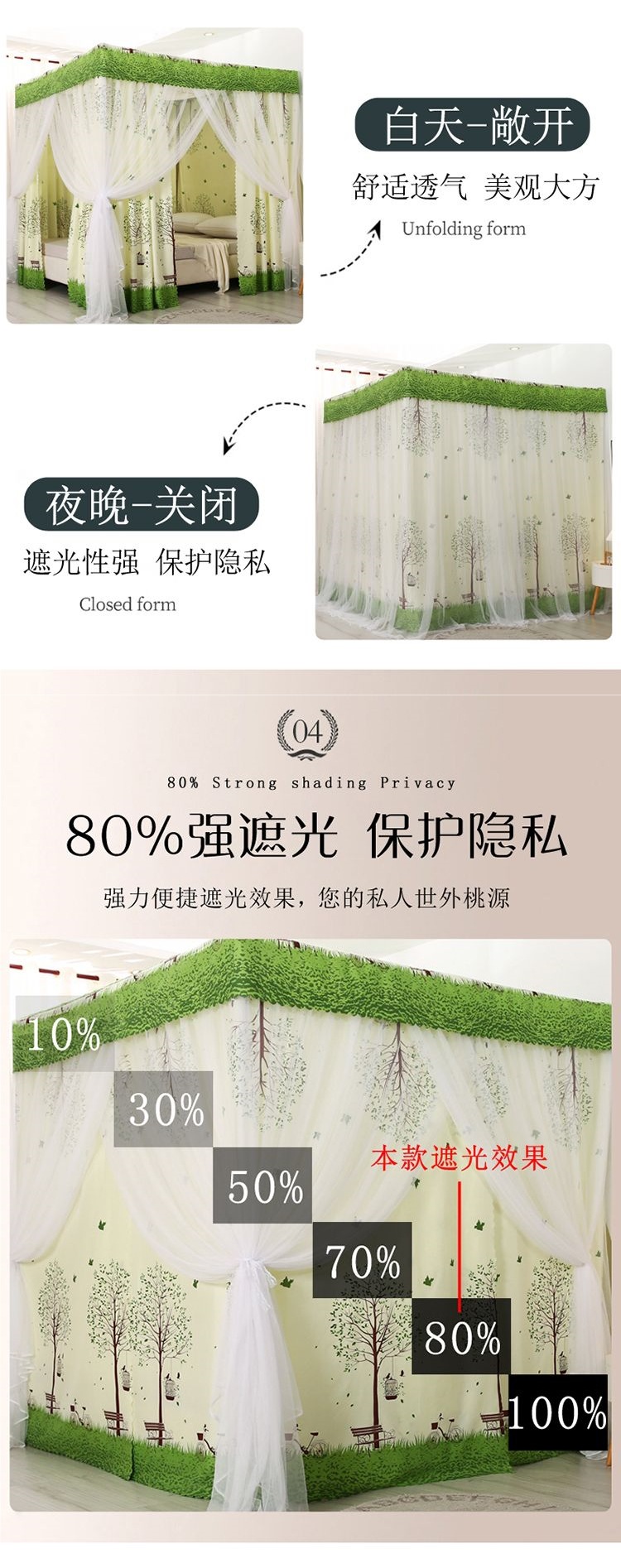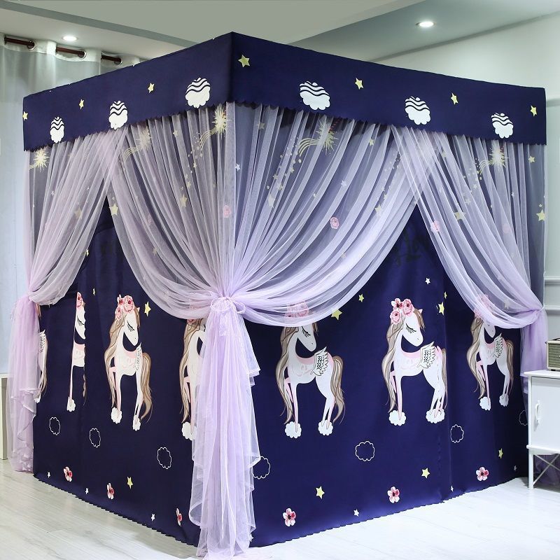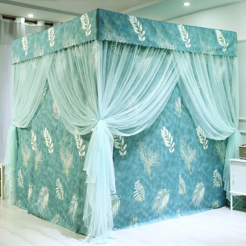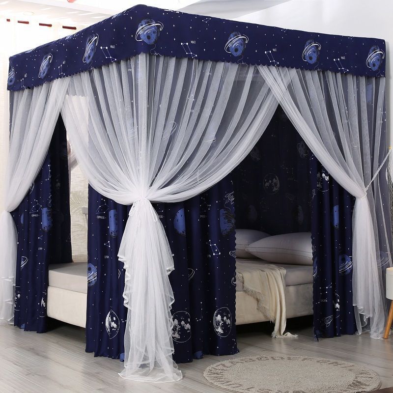 바닥부터 천장까지 차광 침대 커튼, 모기장, 일체형 침대 커튼, 기숙사 완전 밀폐형 3도어 방진 공주 소녀 스타일 3도어스토어 가기