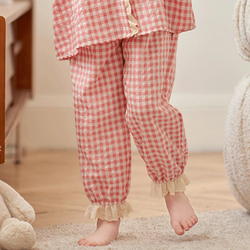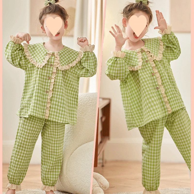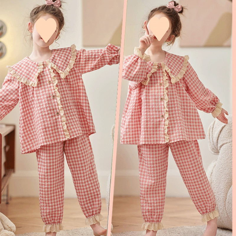 여아 잠옷, 아동용 긴팔 새 봄, 가을 격자 무늬 어린 소녀, 중대형 어린이 소녀, 공주 스타일 가정복 세트