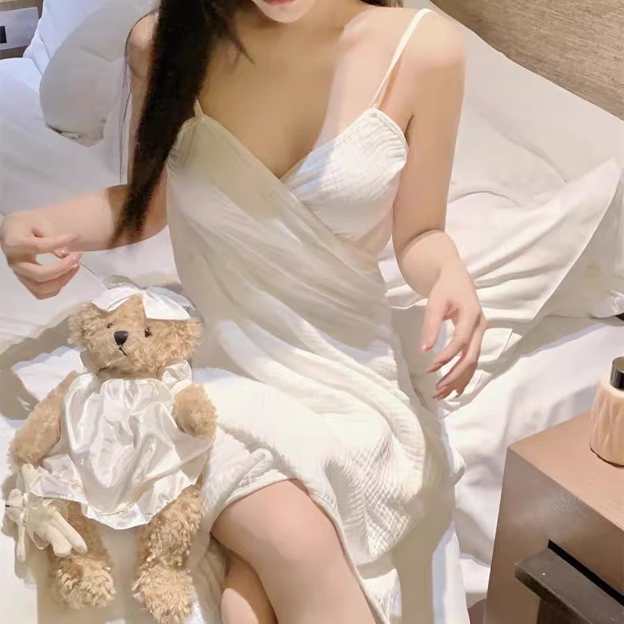 면 거즈 웨어러블 목욕 타올 새로운 슬링 백리스 잠옷 원피스 잠옷 섹시한 잠옷 목욕 타월