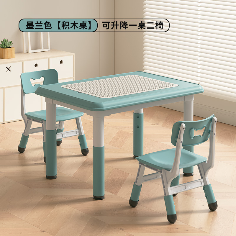 • 빌딩 블록 이중 목적 테이블 1개 + 의자 2개 진한 녹색