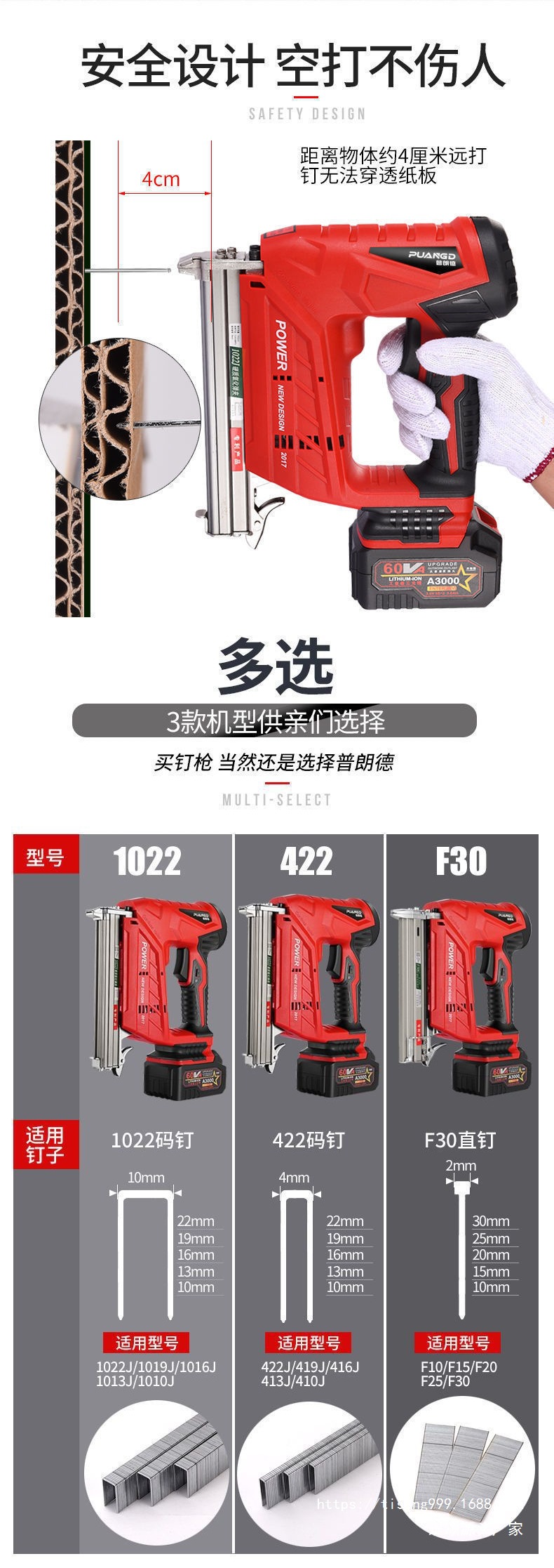 • F30 리튬 전기 네일건 [고출력]) (스타일_향상된 버전 68Vt [배터리 2개 및 충전 1개] + 직선 못 1박스
