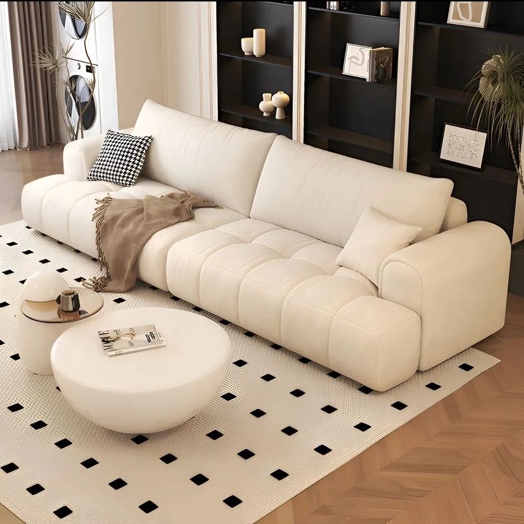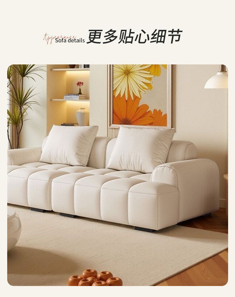 2025 새로운 프랑스 인터넷 연예인 크림 스타일 셔닐 코튼 린넨 퍼프 벨벳 패브릭 소파 거실 소파 고양이 스크래치 가죽