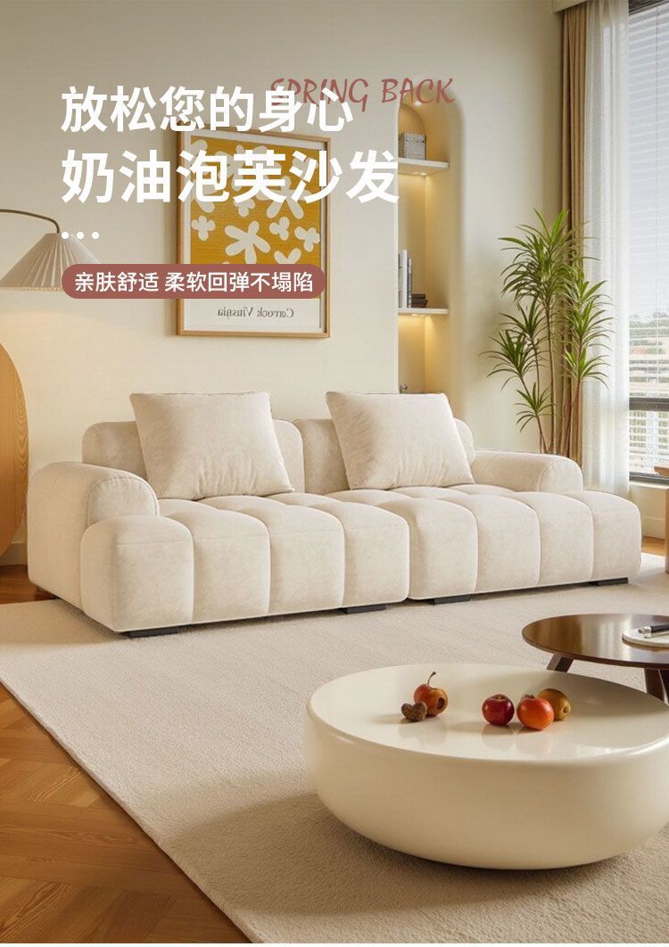 2025 새로운 프랑스 인터넷 연예인 크림 스타일 셔닐 코튼 린넨 퍼프 벨벳 패브릭 소파 거실 소파 고양이 스크래치 가죽스토어 가기