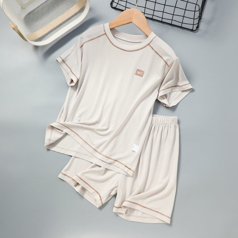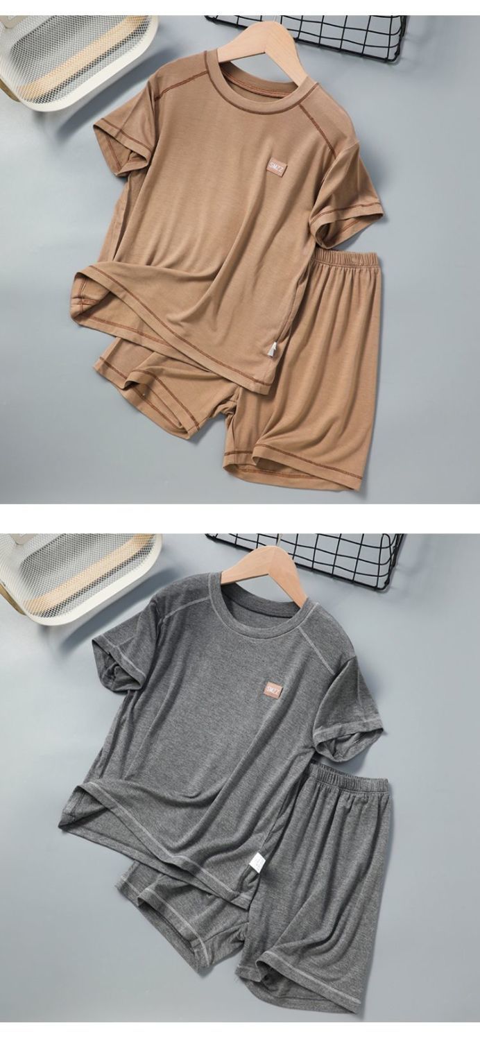 모달 아동 여름 정장 소년 반팔 반바지 소년 잠옷 투피스 얇은 청소년 에어컨 의류스토어 가기
