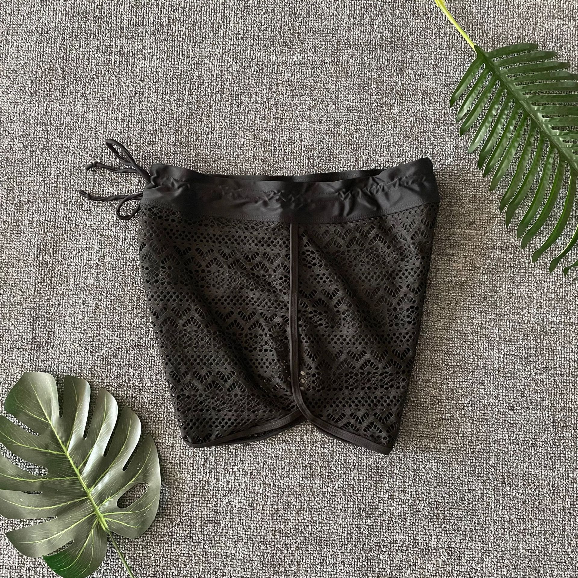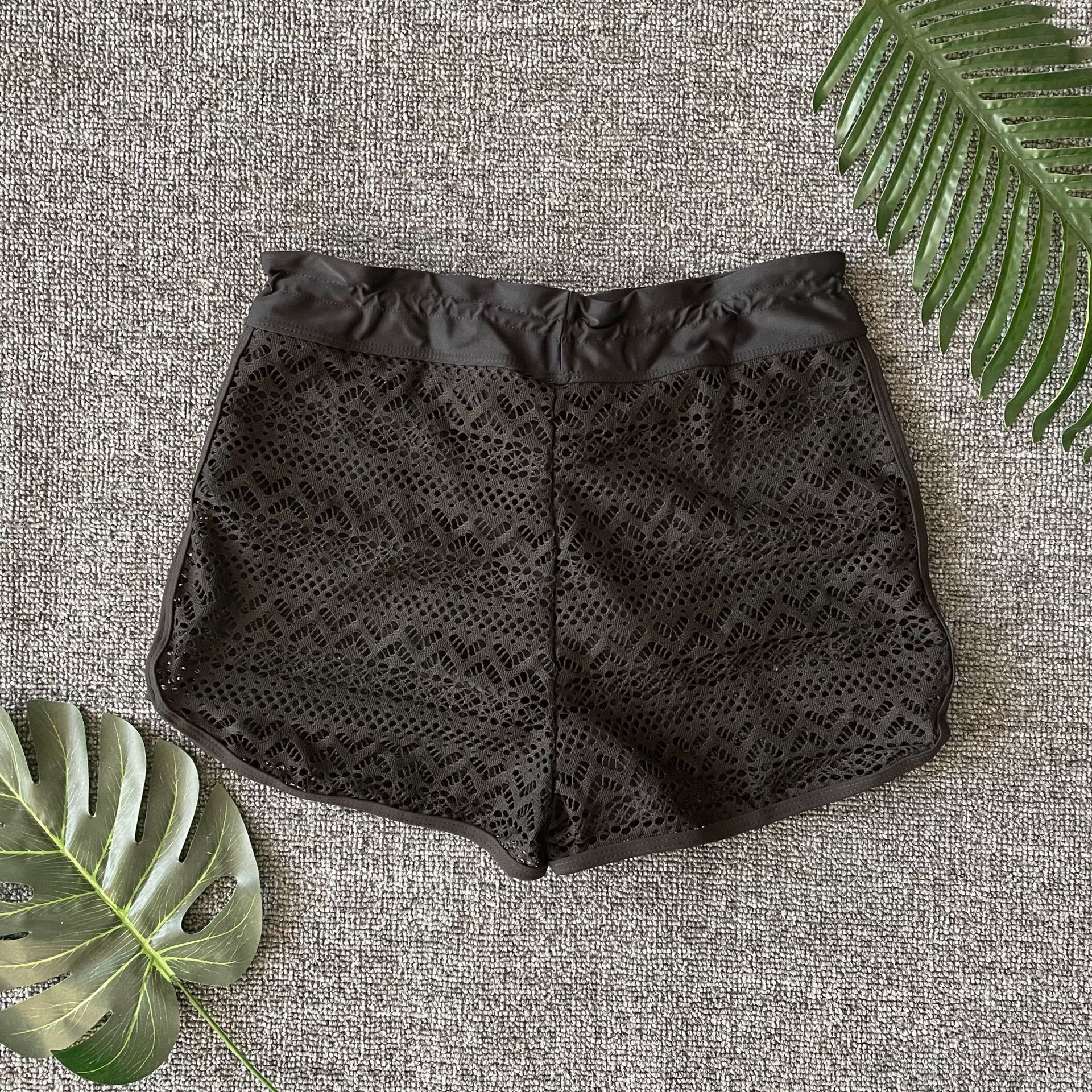 2025 Shiyin 유럽과 미국 수영복 여성 자카드 레이스 솔리드 컬러 복서 팬티 여성 사각형 온천 보수적 인 수영 반바지스토어 가기