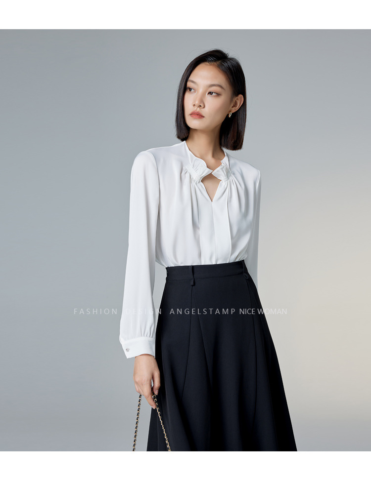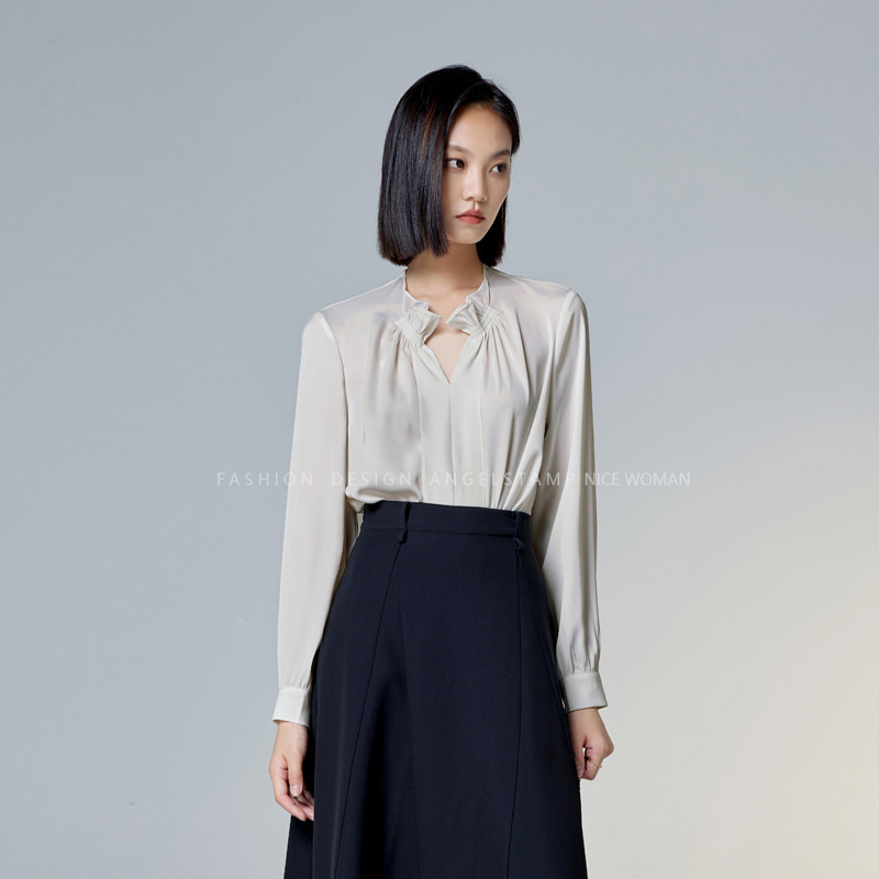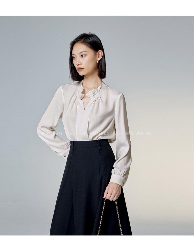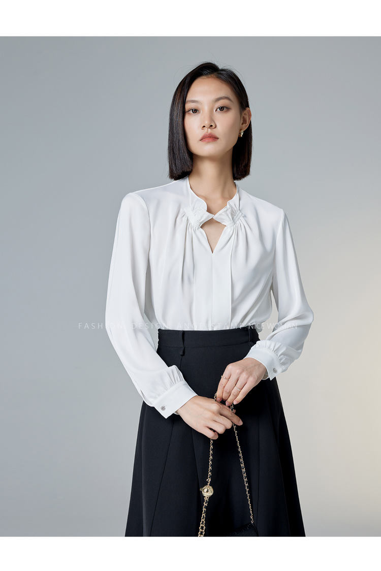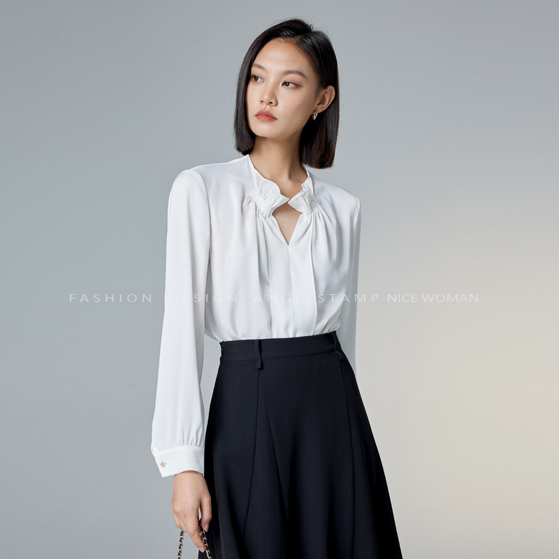 여성용 긴팔 셔츠 2025 봄, 가을 새로운 프랑스 통근 버진 레이디 루즈 슬리밍 화이트 셔츠스토어 가기