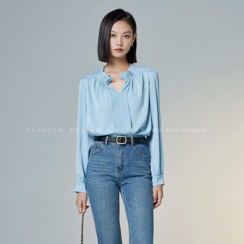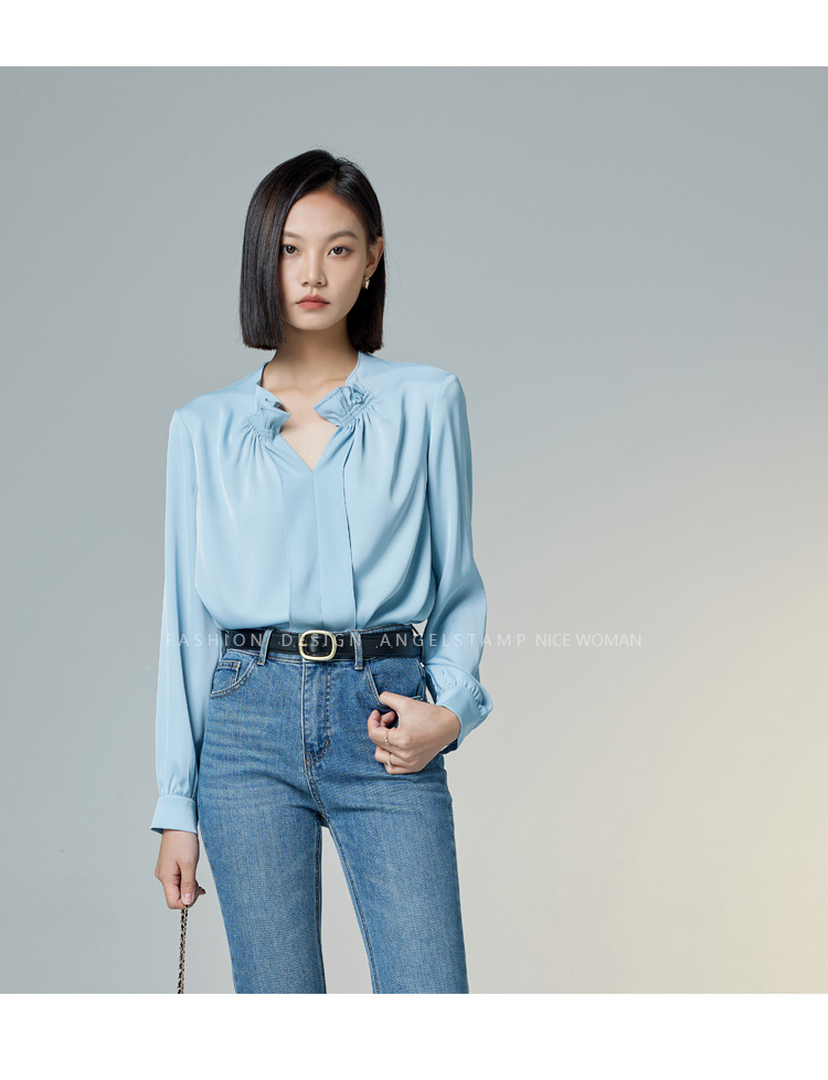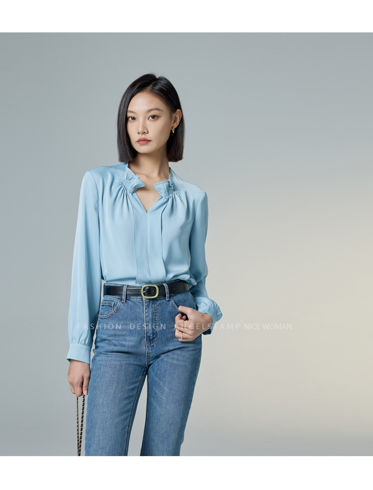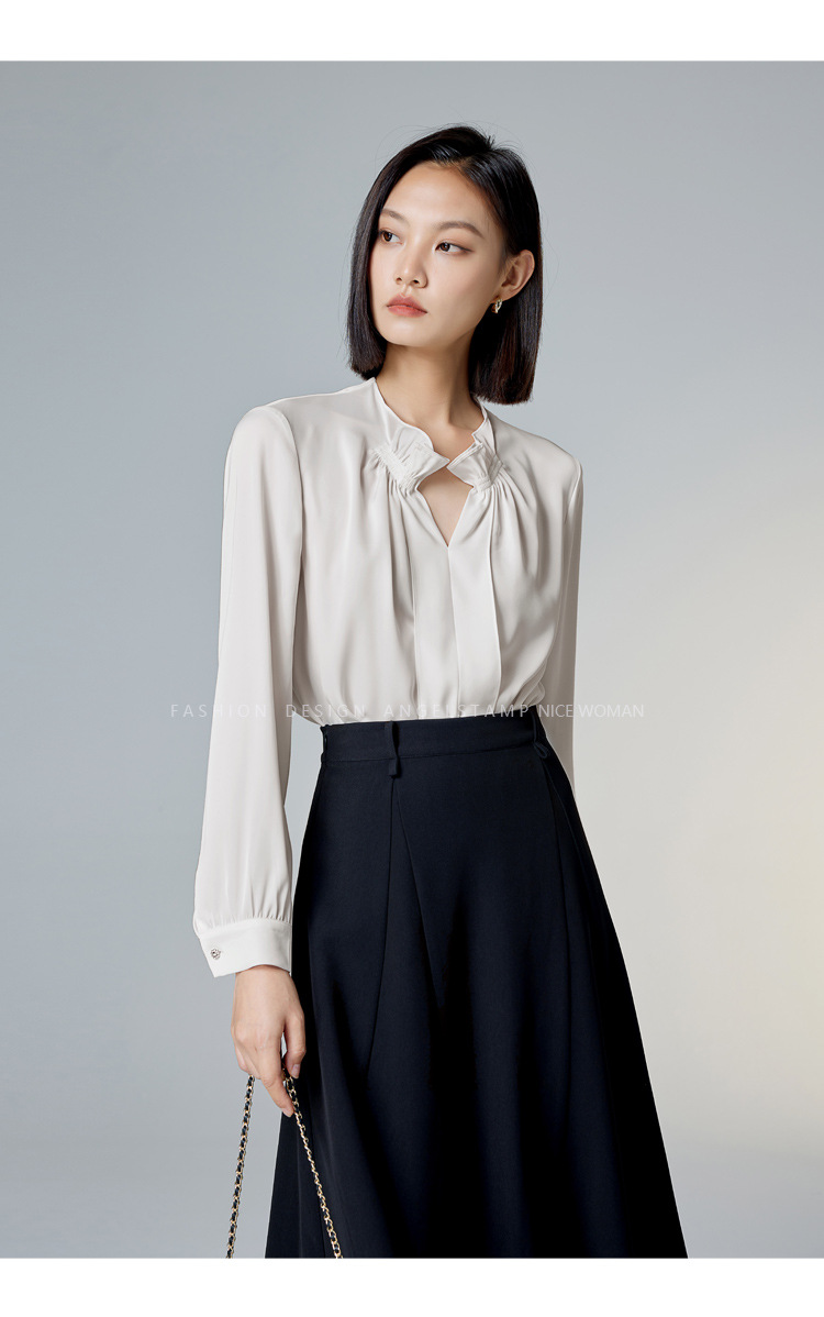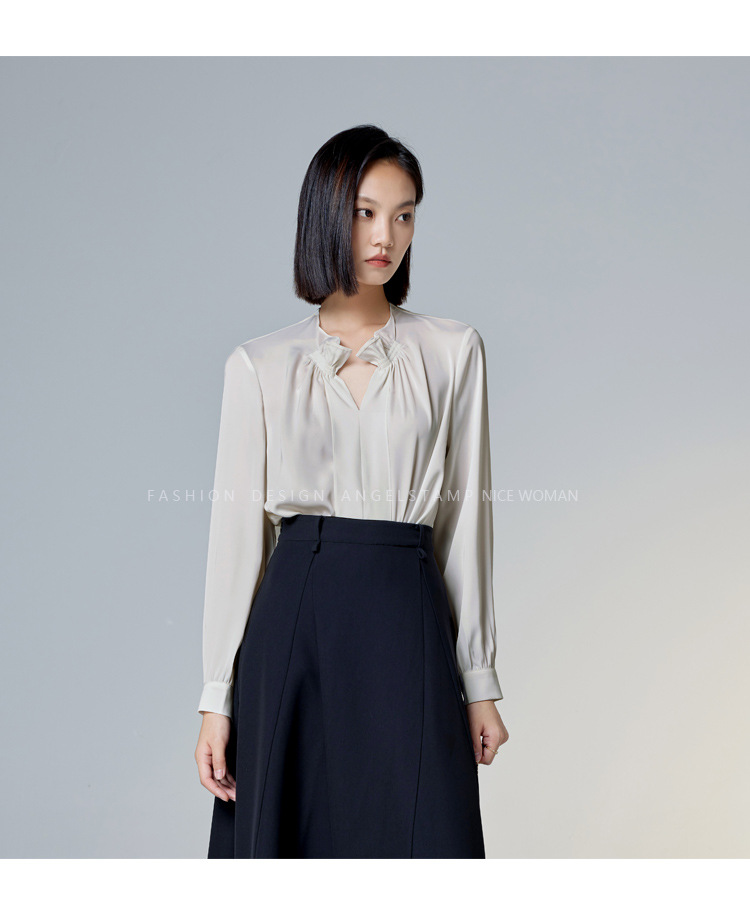 여성용 긴팔 셔츠 2025 봄, 가을 새로운 프랑스 통근 버진 레이디 루즈 슬리밍 화이트 셔츠스토어 가기
