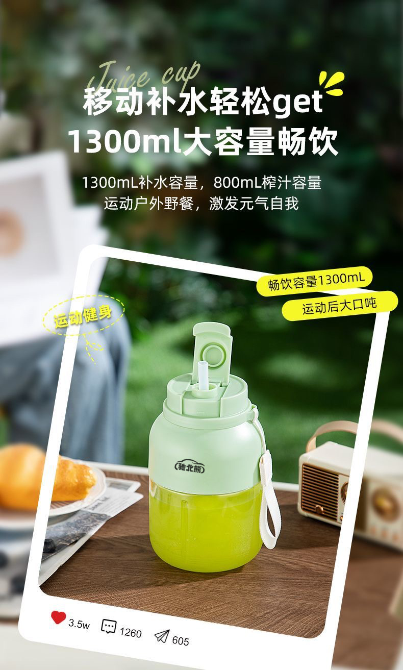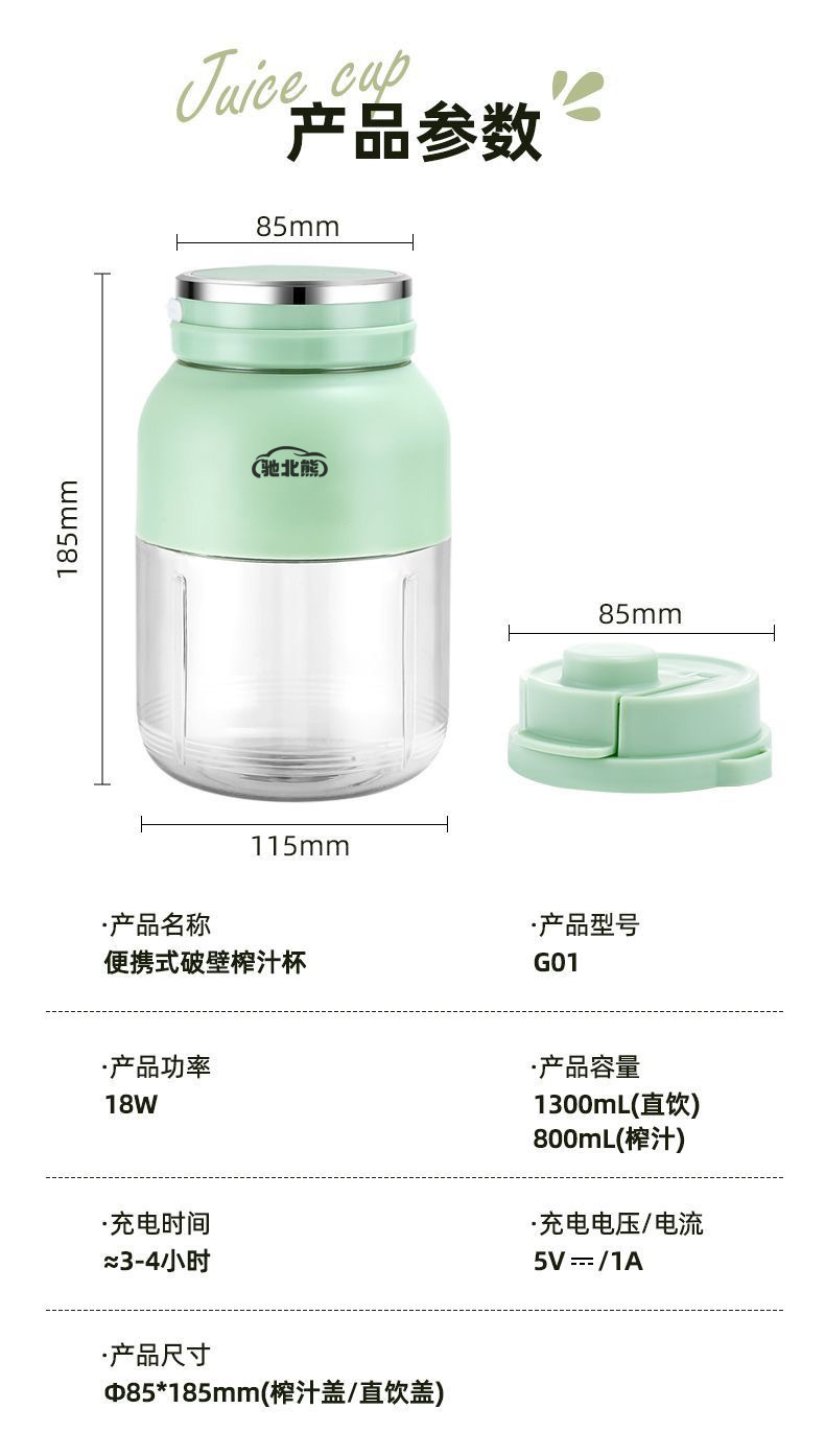 • 1300ml 녹색 [하나의 기계에 두 개의 뚜껑이 있음] 얼음을 분쇄할 수 있음