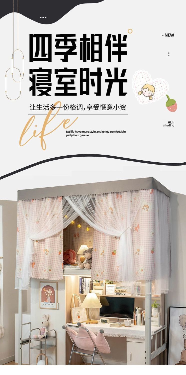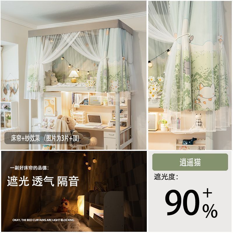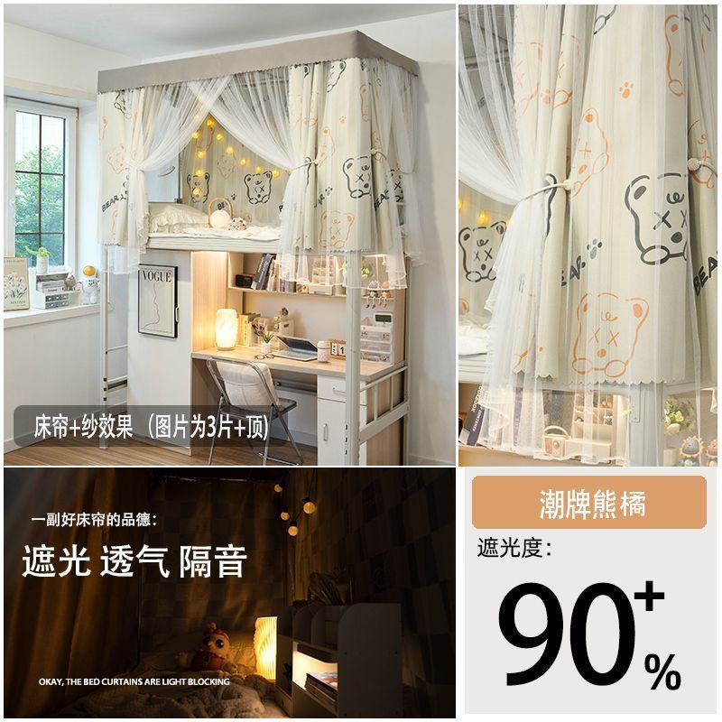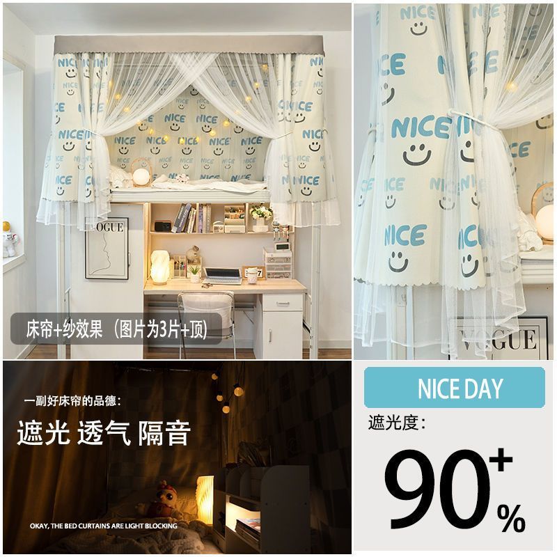 강력한 차광 및 모기 방지 개학 학생 기숙사 차광 침대 커튼 모기장 상단 및 하단 침대 남녀 기숙사 침대 커튼 0.9m스토어 가기