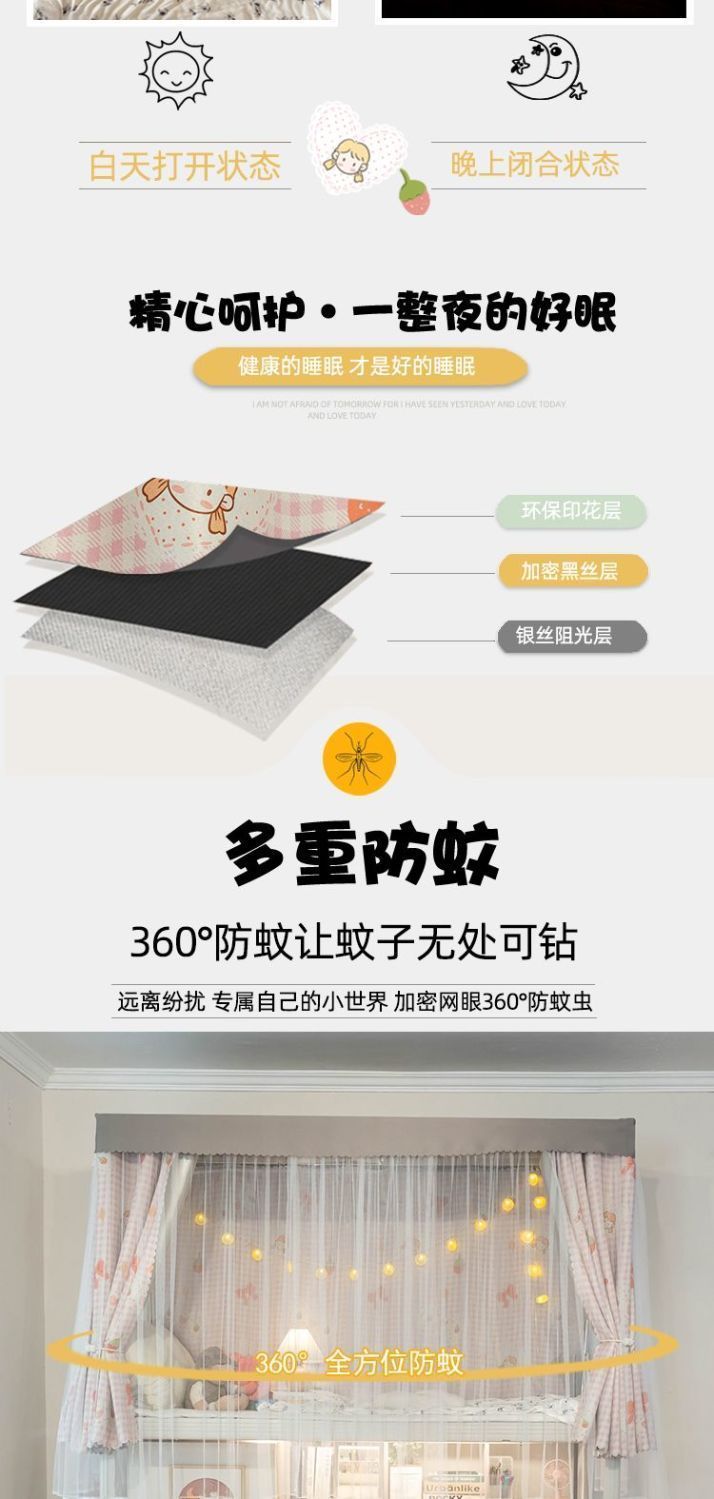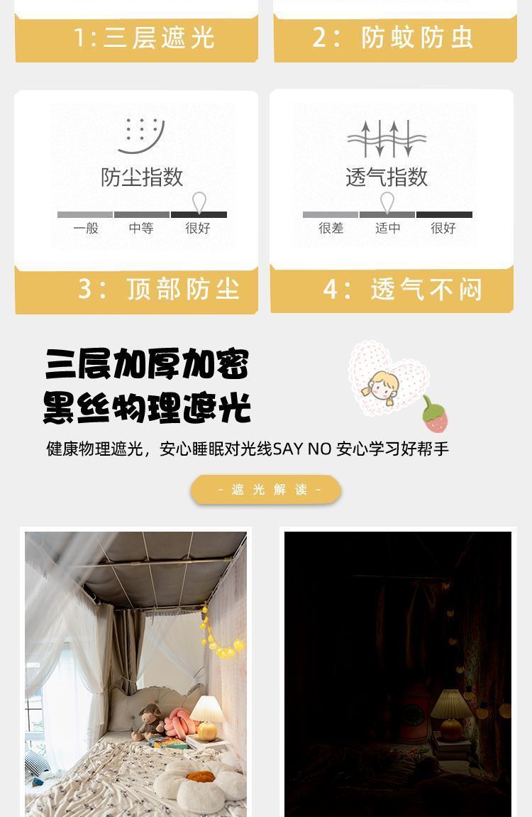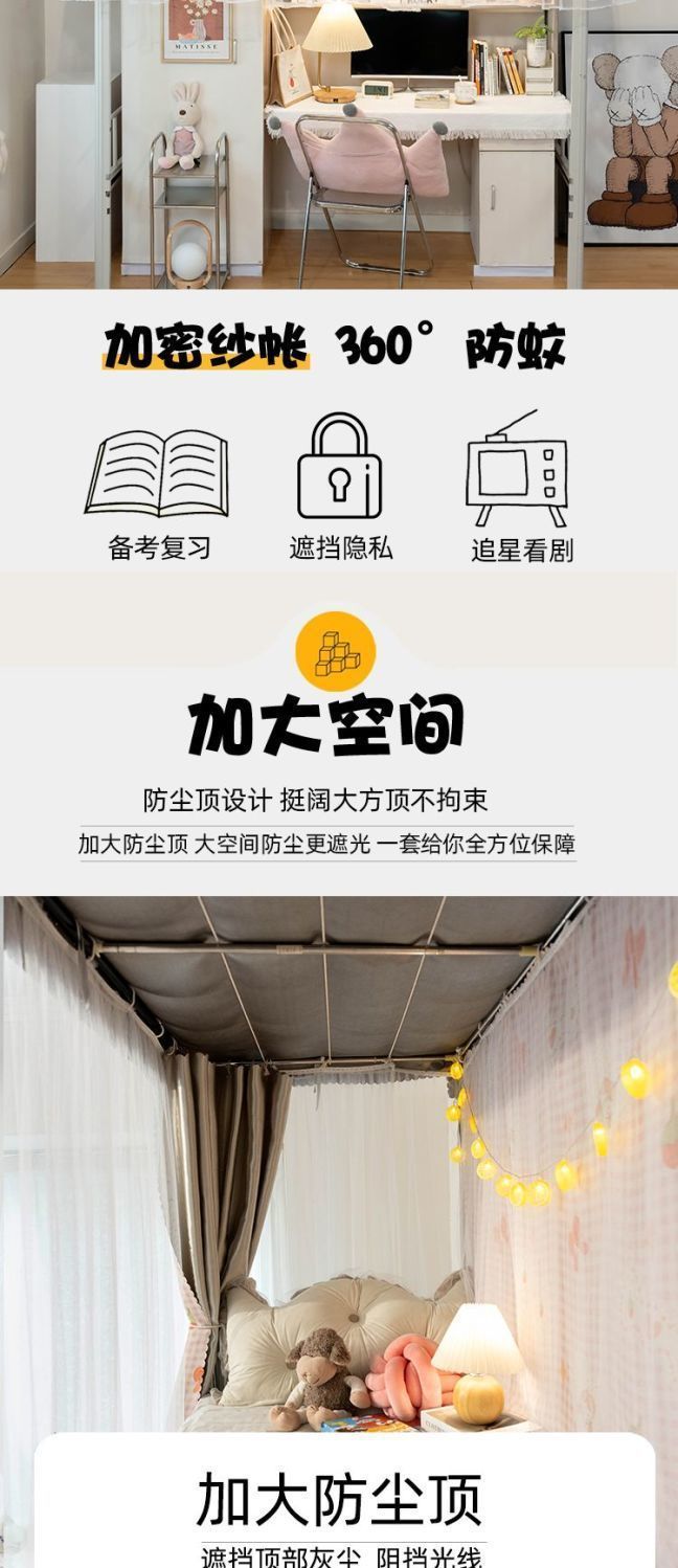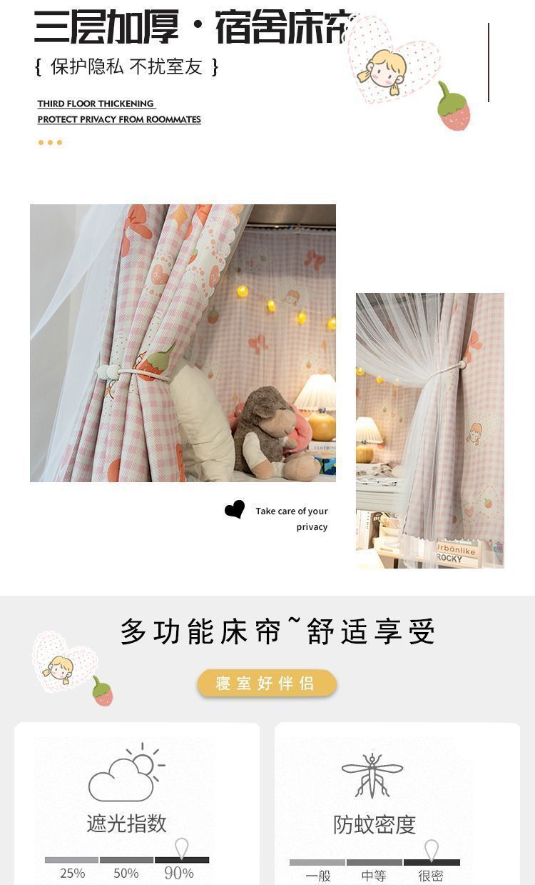 강력한 차광 및 모기 방지 개학 학생 기숙사 차광 침대 커튼 모기장 상단 및 하단 침대 남녀 기숙사 침대 커튼 0.9m스토어 가기