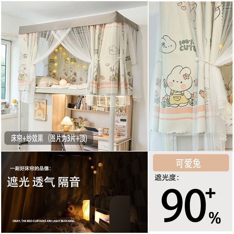 강력한 차광 및 모기 방지 개학 학생 기숙사 차광 침대 커튼 모기장 상단 및 하단 침대 남녀 기숙사 침대 커튼 0.9m