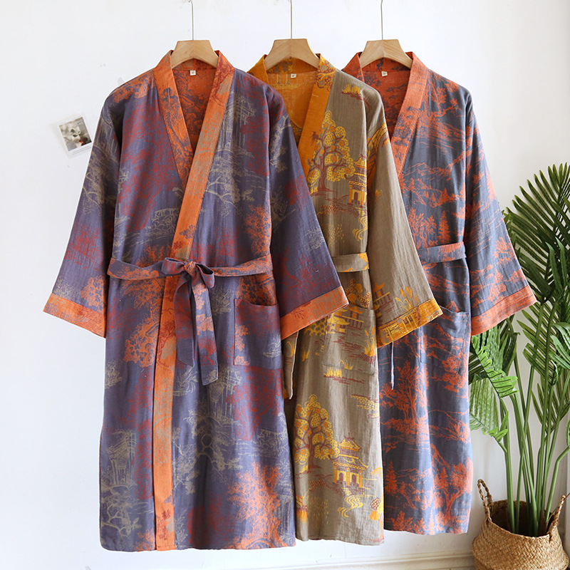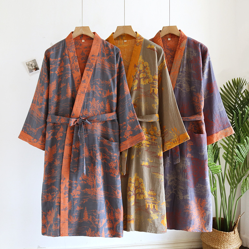 성인 남성용 목욕 가운 플러스 사이즈 순면 거즈 자카드 잠옷 봄 여름 잠옷 목욕 가운 흡수성 웨어러블 목욕 타월스토어 가기
