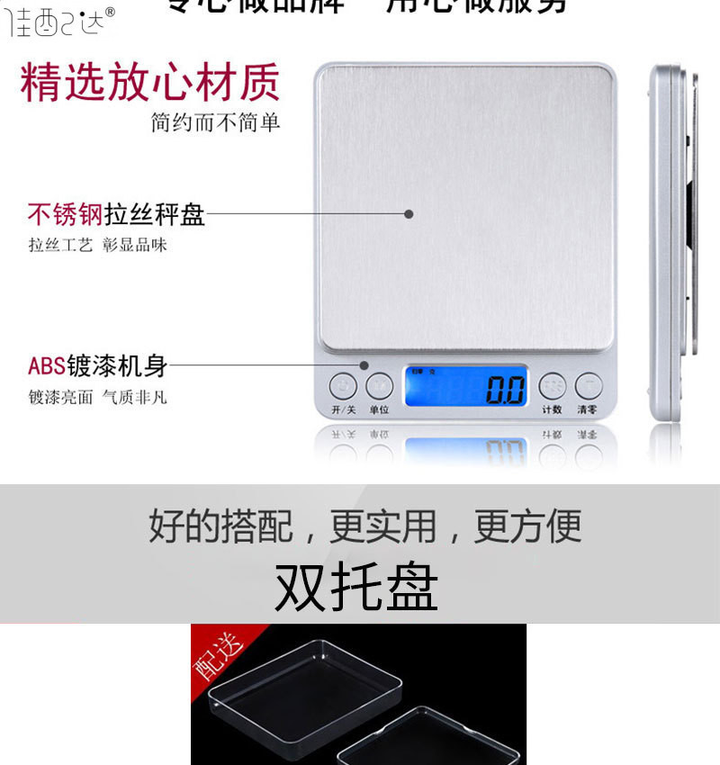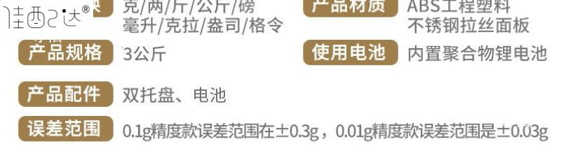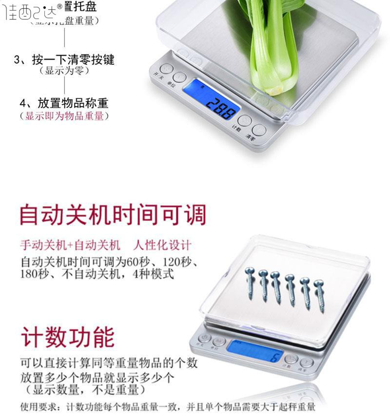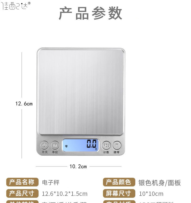• 2000g 계량 범위 0.1g 정사각형 모델