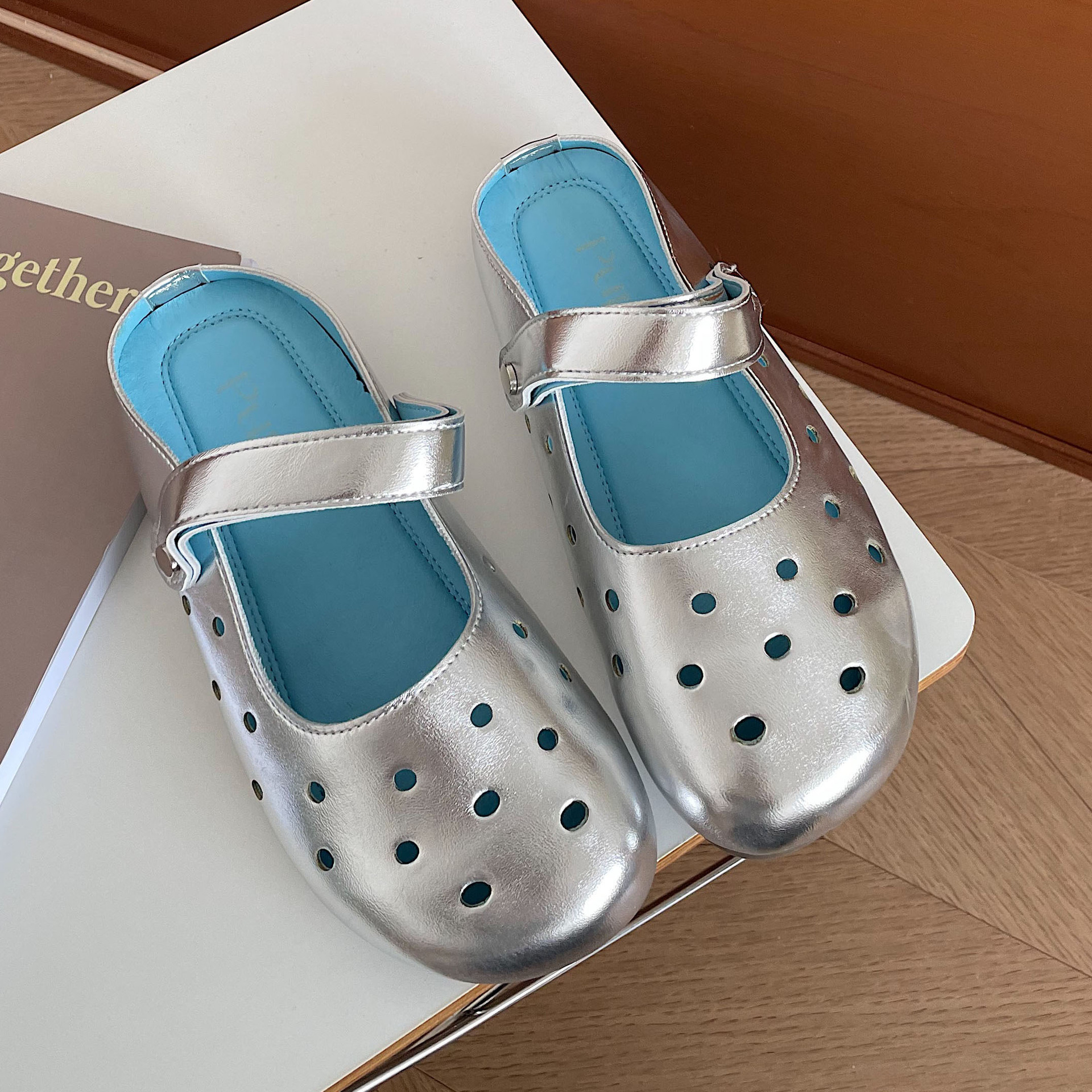 여름 아우터로 입기 좋은 여성용 인터넷 연예인 실버 이너 키높이 발가락 플랫 슬리퍼 2025 뉴 레트로 버켄스탁 샌들스토어 가기