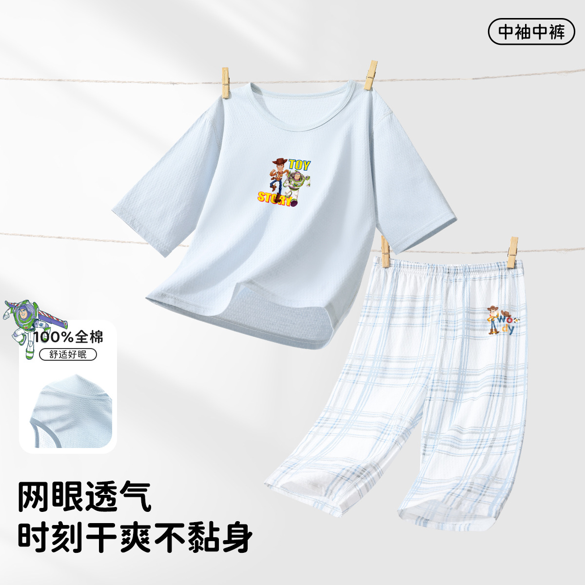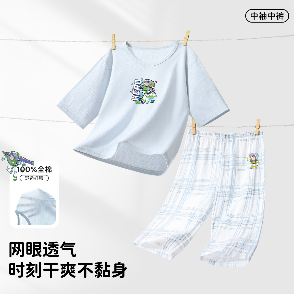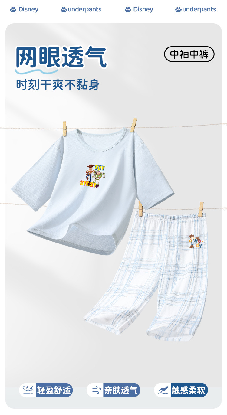 디즈니 어린이 잠옷, 가정복, 남아용 긴팔 에어컨 의류, 여름용 얇은 중대형 어린이 순면 잠옷 세트스토어 가기